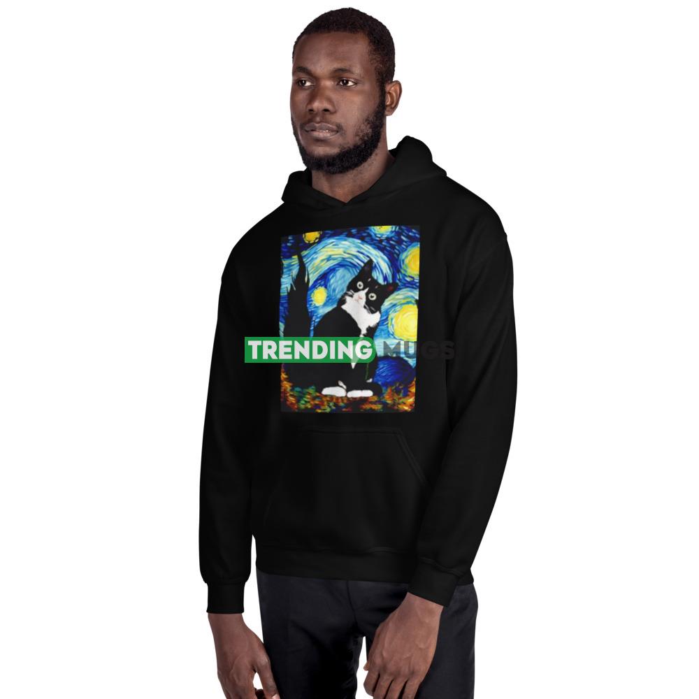 Starry night vincent Van Gogh famous painting black cat shirt – 18500 Unisex Heavy Blend Hooded Sweatshirt
