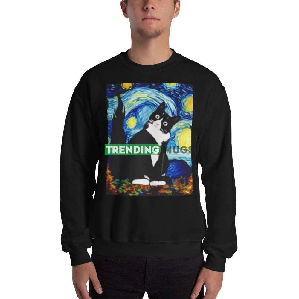 Starry night vincent Van Gogh famous painting black cat shirt – 18000 Unisex Heavy Blend Crewneck Sweatshirt
