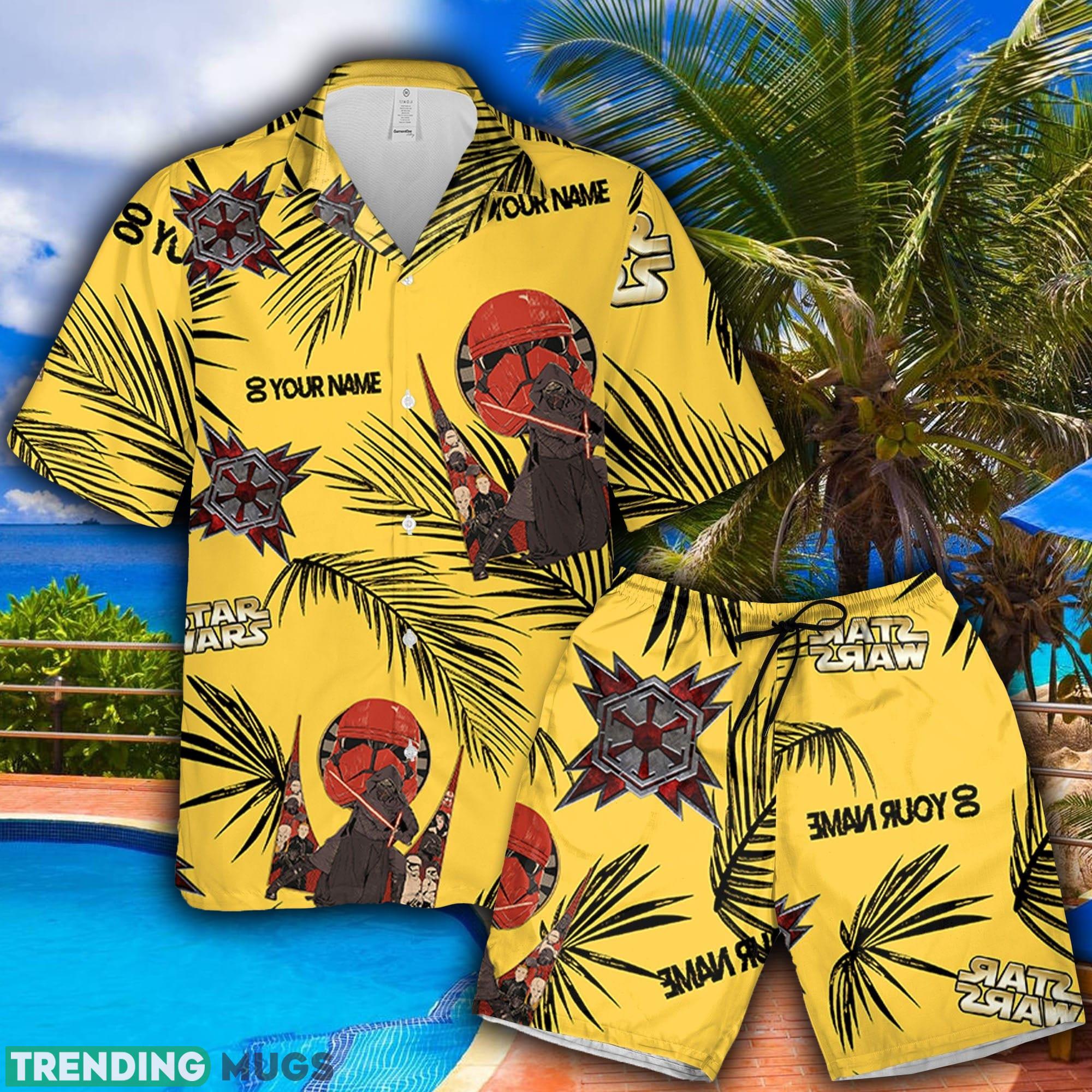 Starwar Yellow Hawaiian Shirt And Short Palm Leaves Custom Name Summer Gift For Men And Women -  Starwar Yellow Hawaiian Shirt Palm Leaves Custom Name Summer Beach Gift For Men And Women