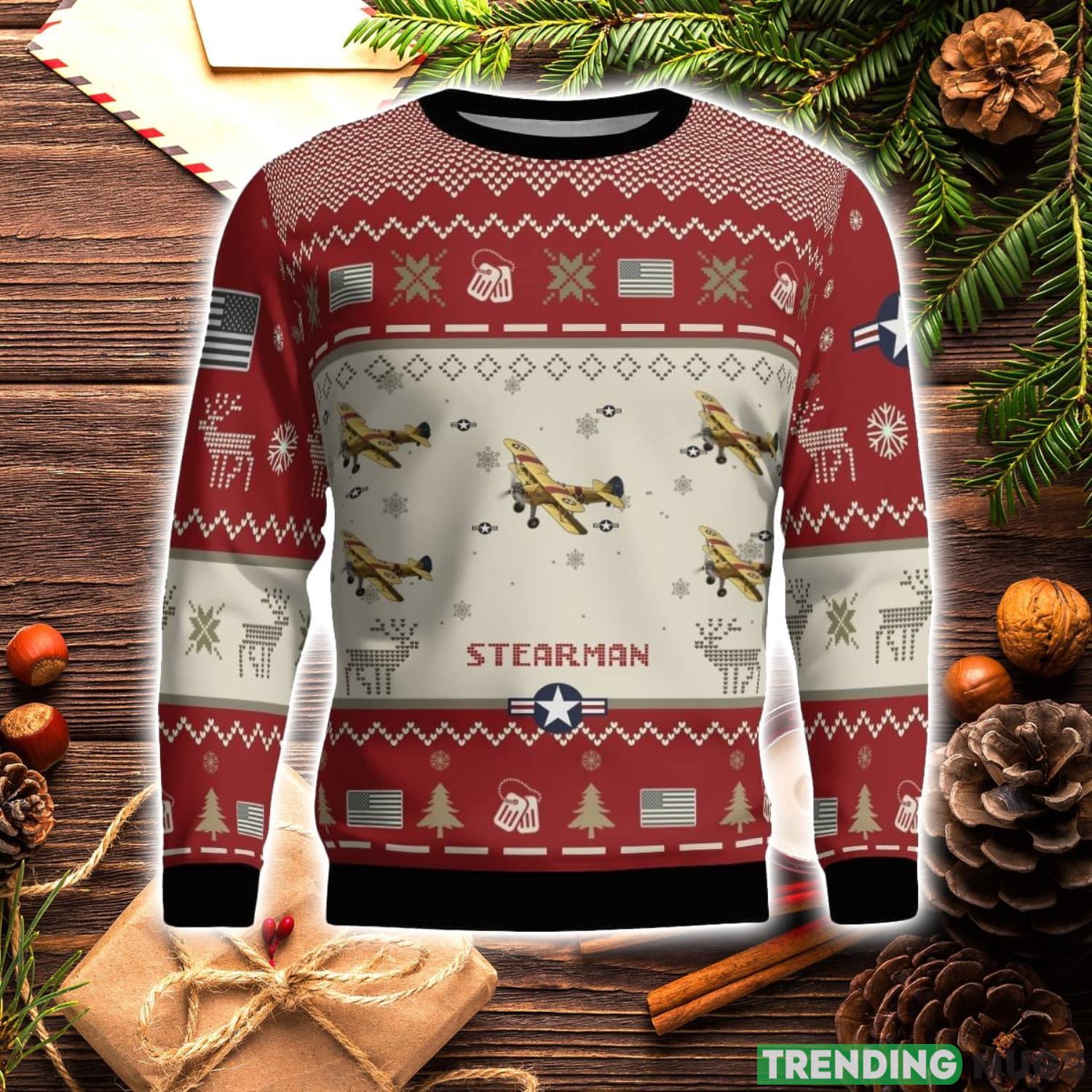 Stearman Aircraft Red Ugly Christmas Sweater Christmas Season Gift Veteran USA Air Force 3D Sweater Product Photo 1