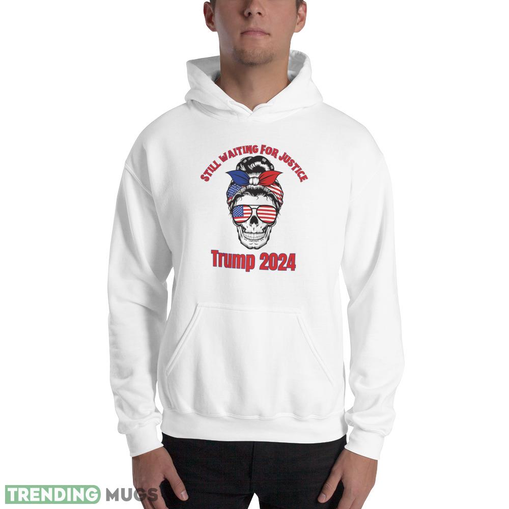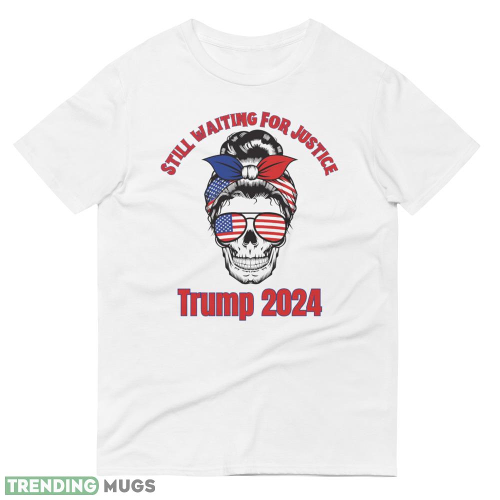 “Make a bold statement with the Still Waiting for Justice. Trump 2024 T-Shirt. Featuring a striking skull donning USA flag glasses and a bun, this classic tee is the ultimate representation of your unwavering support for President Trump. The perfect addition to your wardrobe, this t-shirt is made with high-quality materials, ensuring maximum comfort and durability. Wear it to political rallies, social events, or just as a casual outfit to showcase your patriotism. Show the world that you’re still waiting for justice and that Trump 2024 is the way forward. Order your Still Waiting for Justice. Trump 2024 T-Shirt today and make a powerful statement with your fashion choices.”