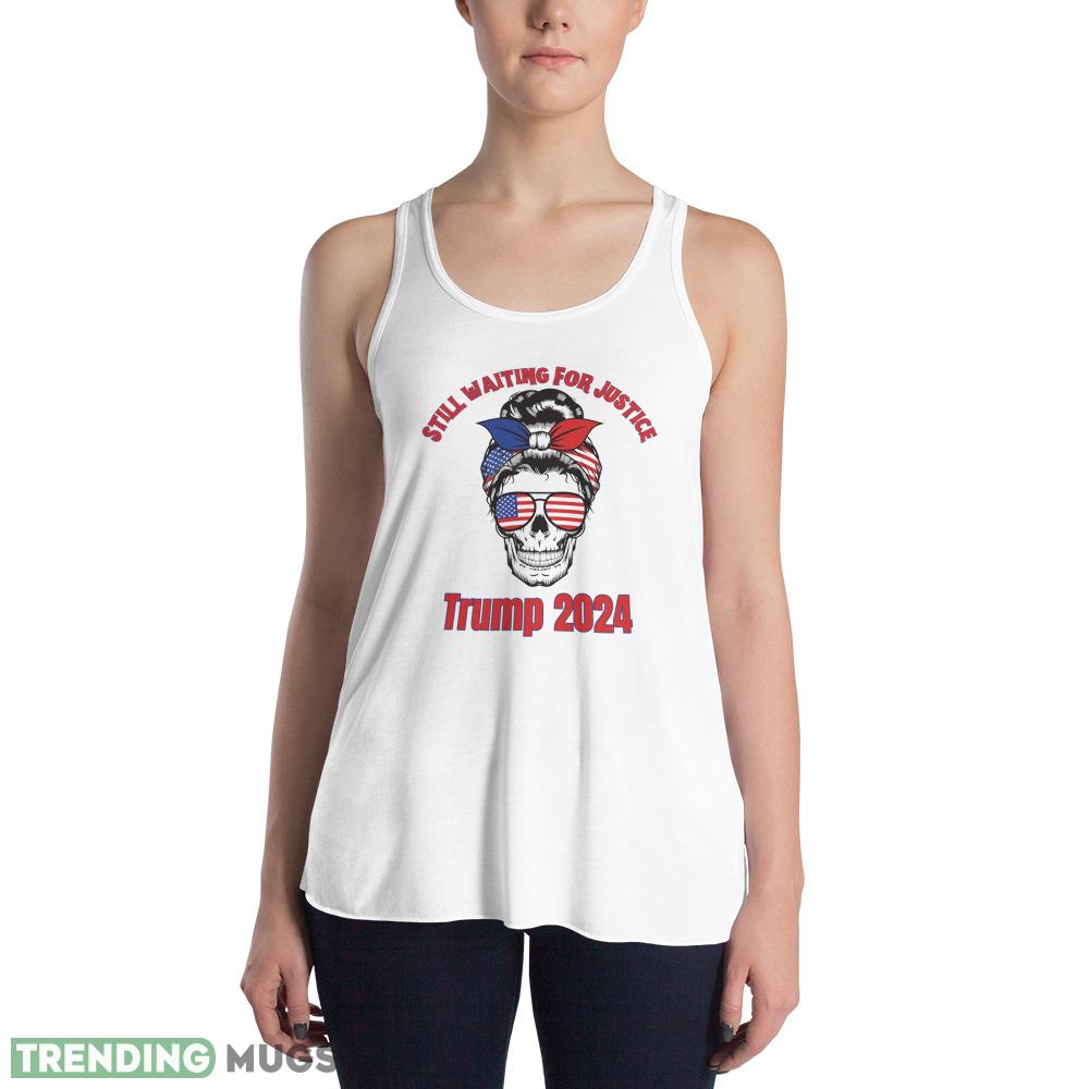 Still Waiting for Justice. Trump 2024. Skull with USA Flag Glasses and Bun. Classic T Shirt – 8800 Women’s Flowy Racerback Tank
