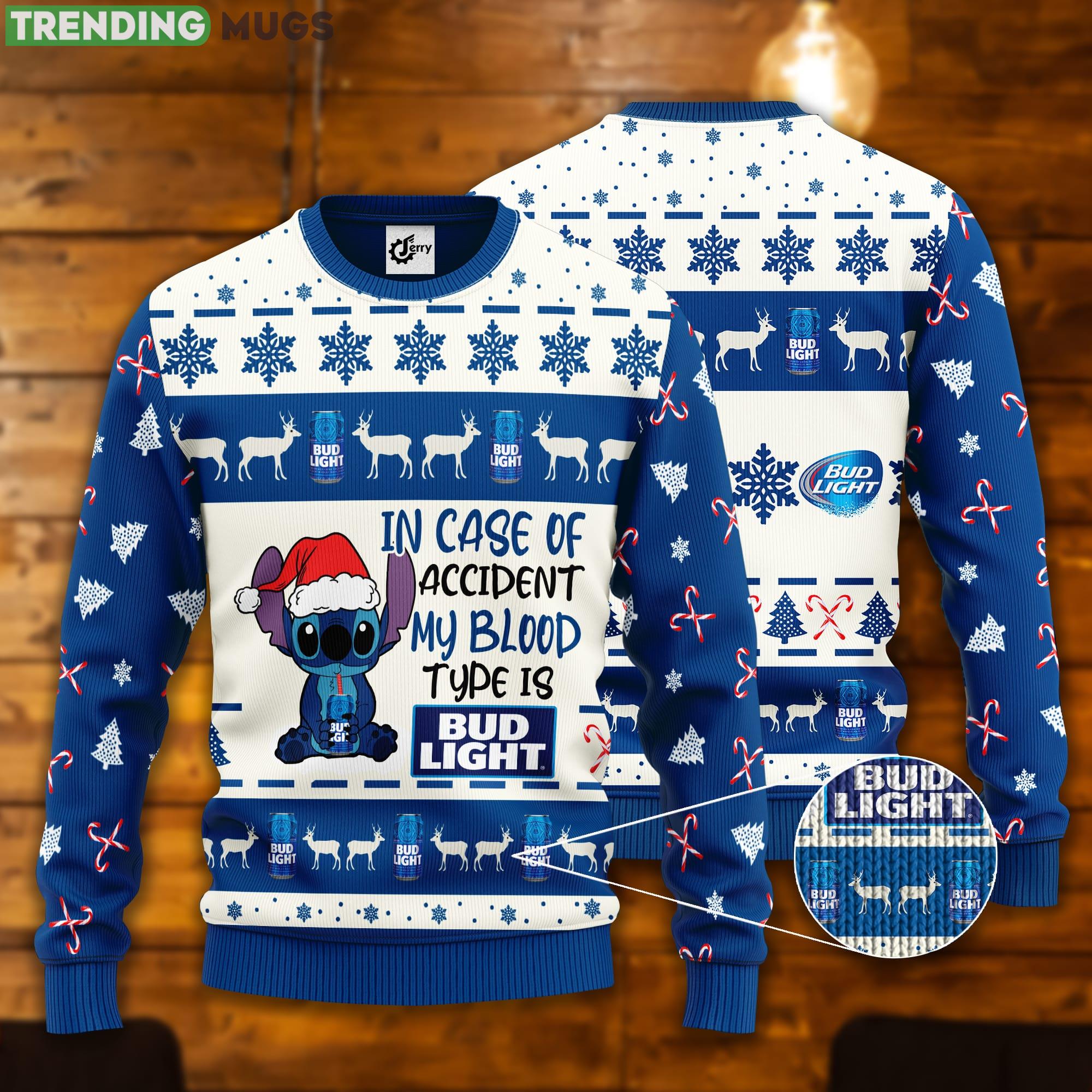 Stitch In Case Of Accident My Blood Type Is Bud Light Ugly Christmas Sweater Informations: