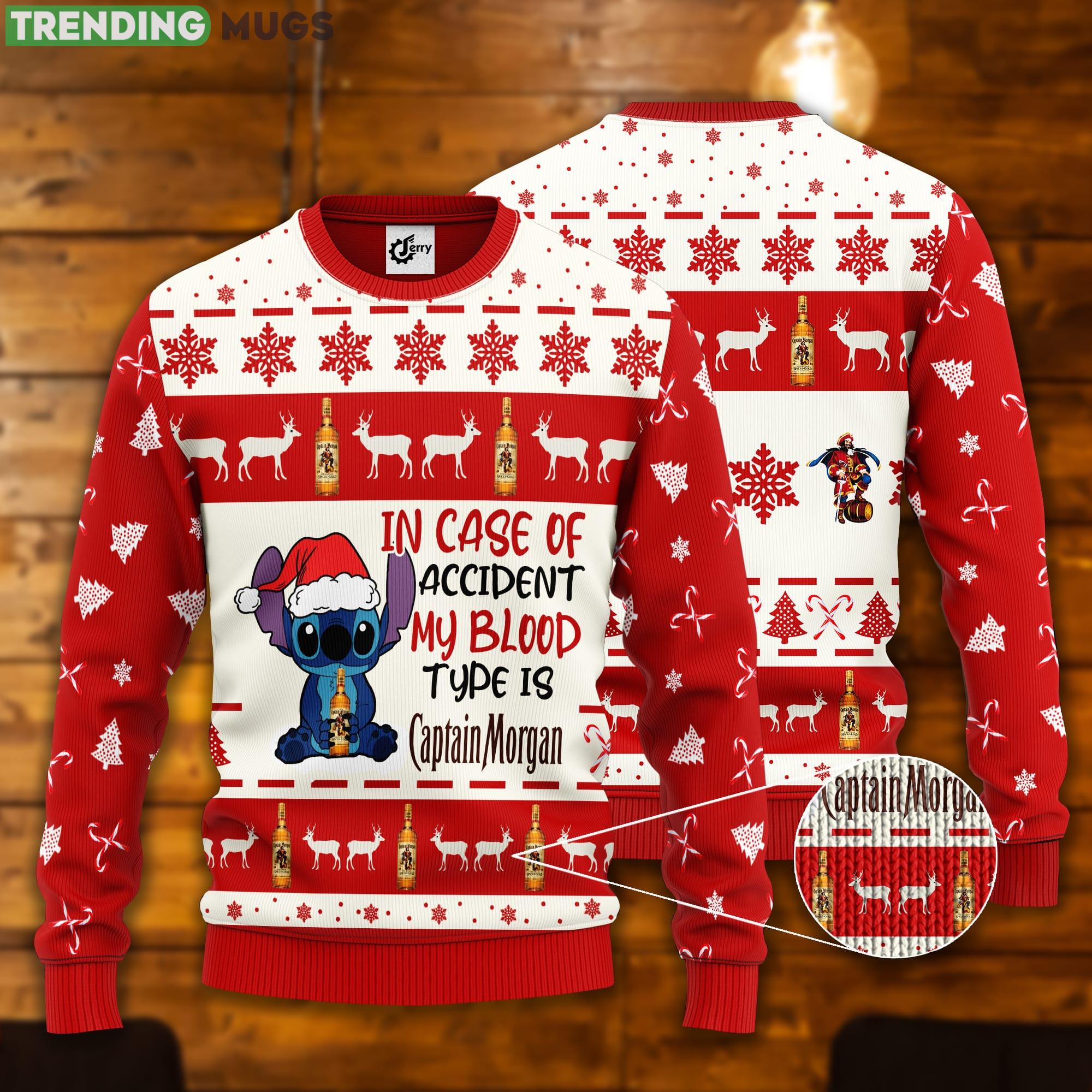 Stitch In Case Of Accident My Blood Type Is Captain Morgan Ugly Christmas Sweater Informations: