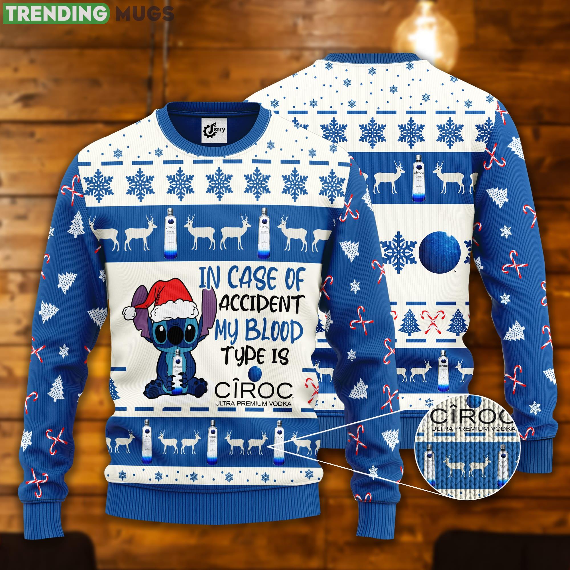 Stitch In Case Of Accident My Blood Type Is Ciroc Ugly Christmas Sweater Informations: