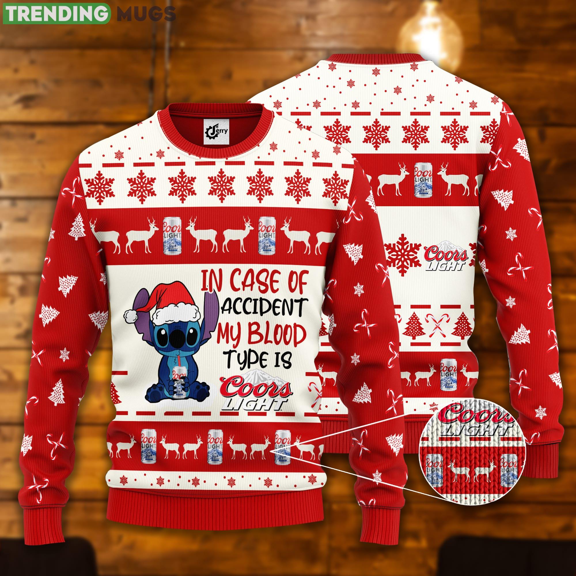 Stitch In Case Of Accident My Blood Type Is Coors Light Ugly Christmas Sweater Informations: