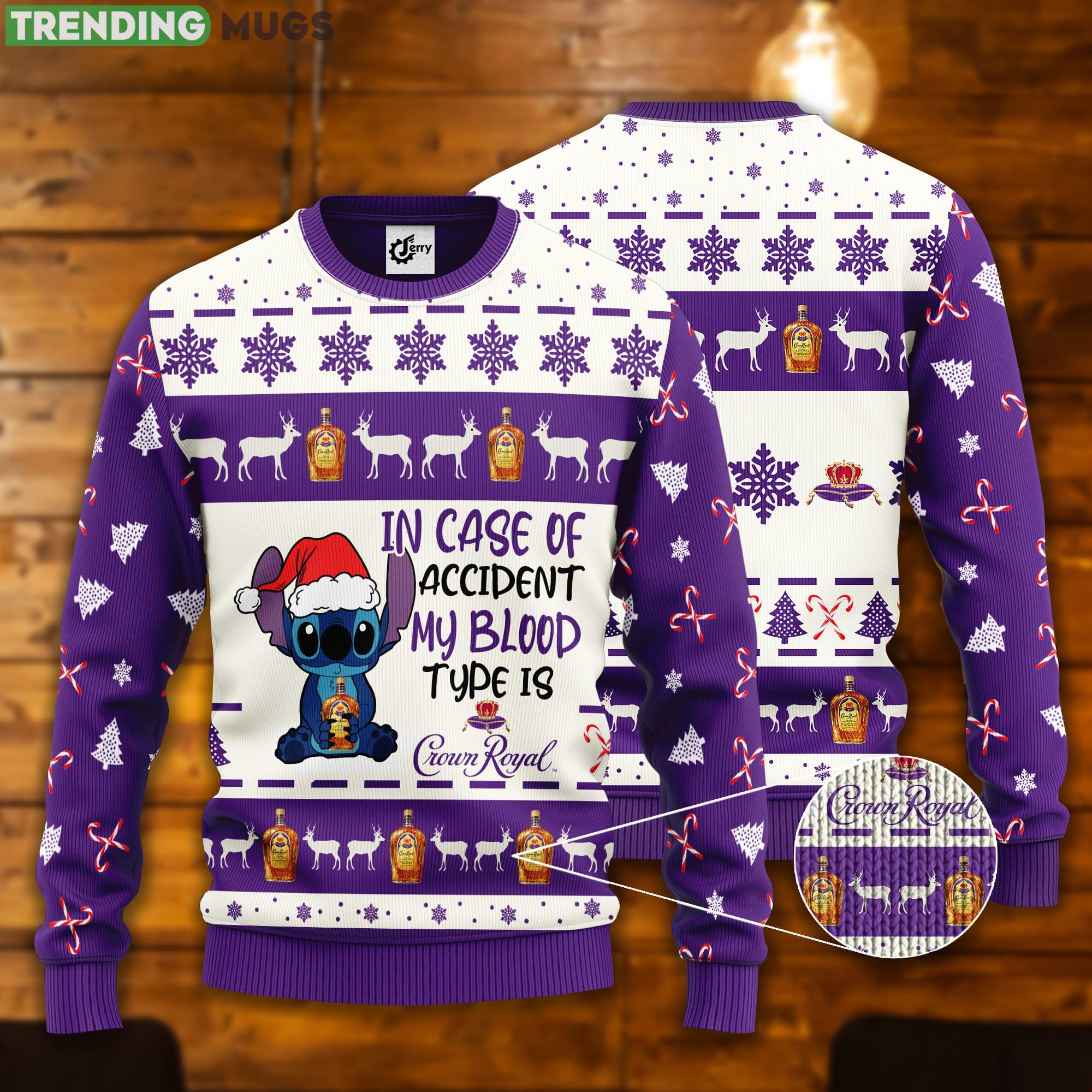 Stitch In Case Of Accident My Blood Type Is Crown Royal Ugly Christmas Sweater Informations: