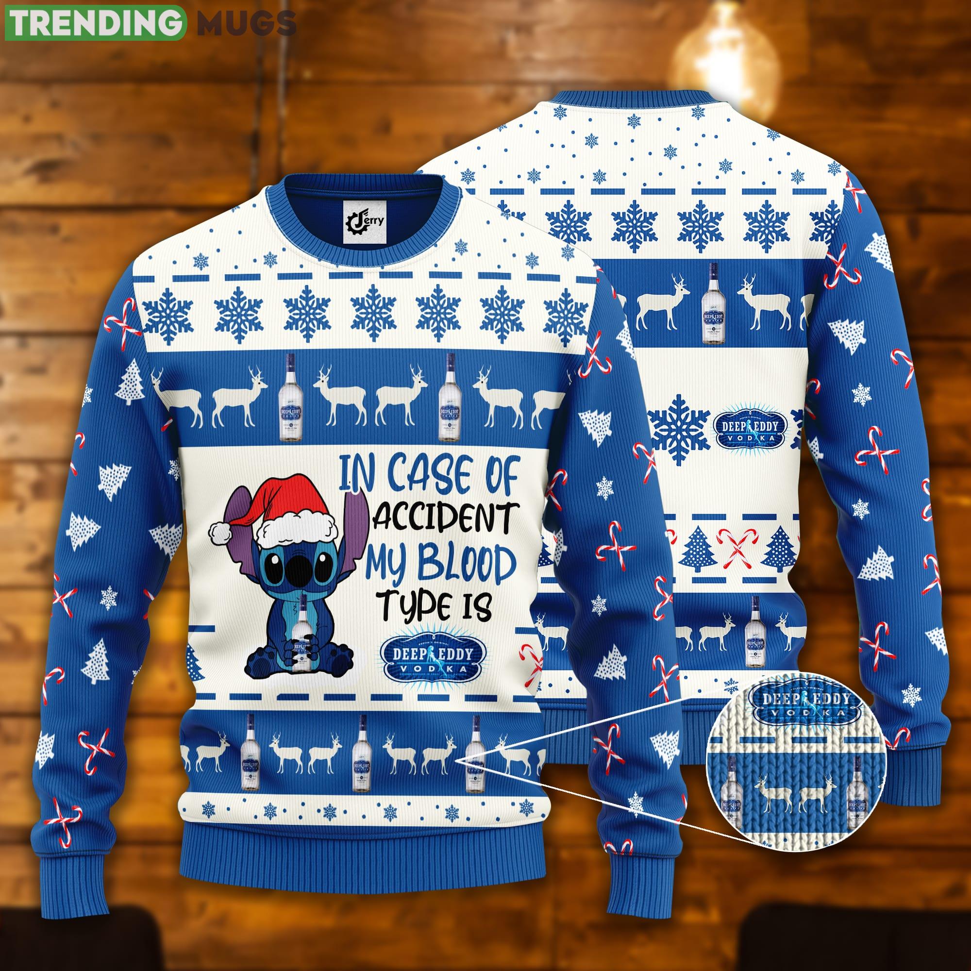 Stitch In Case Of Accident My Blood Type Is Deep Eddy Vodka Ugly Christmas Sweater Informations:
