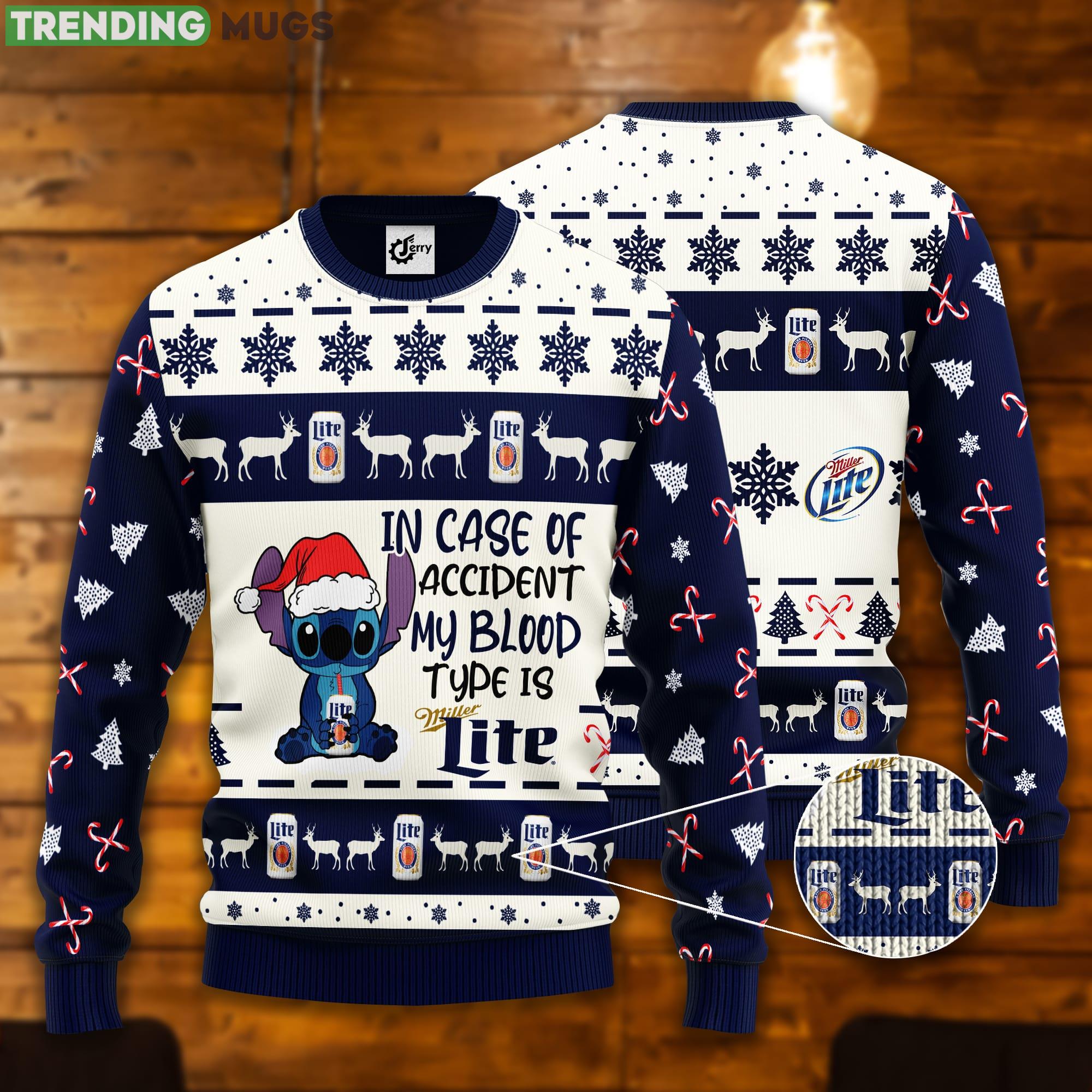 Stitch In Case Of Accident My Blood Type Is Miller Lite Ugly Christmas Sweater Informations: