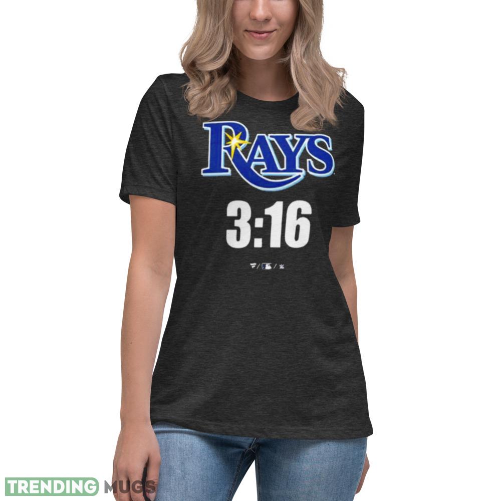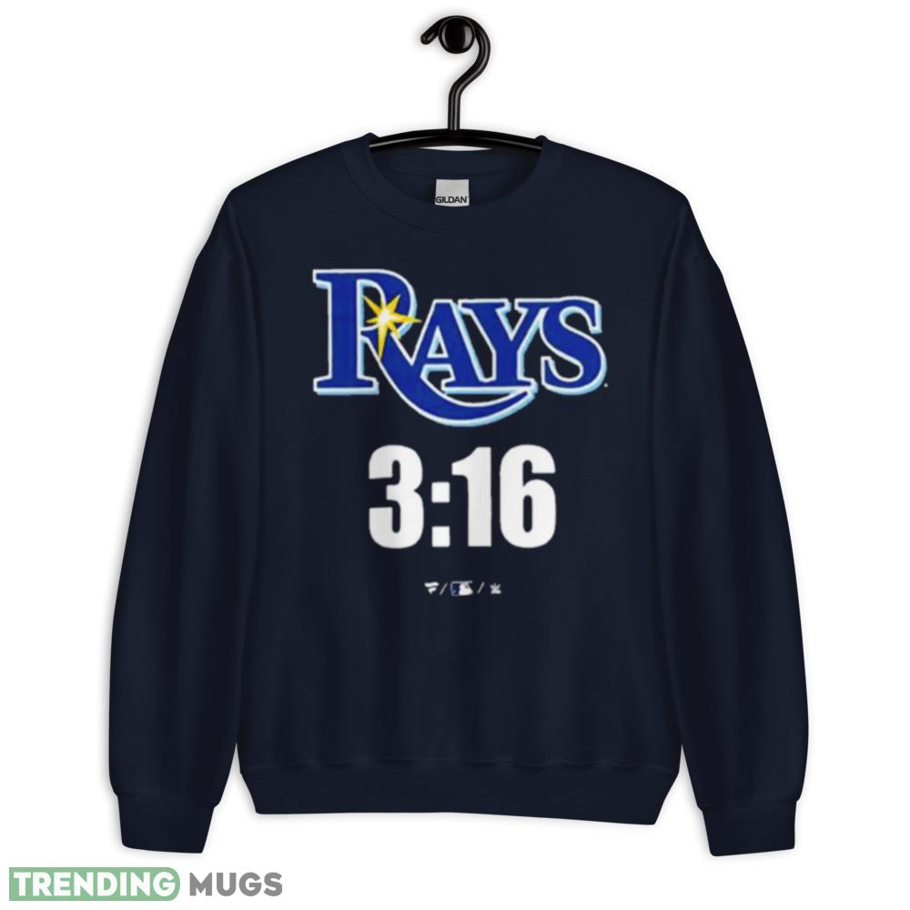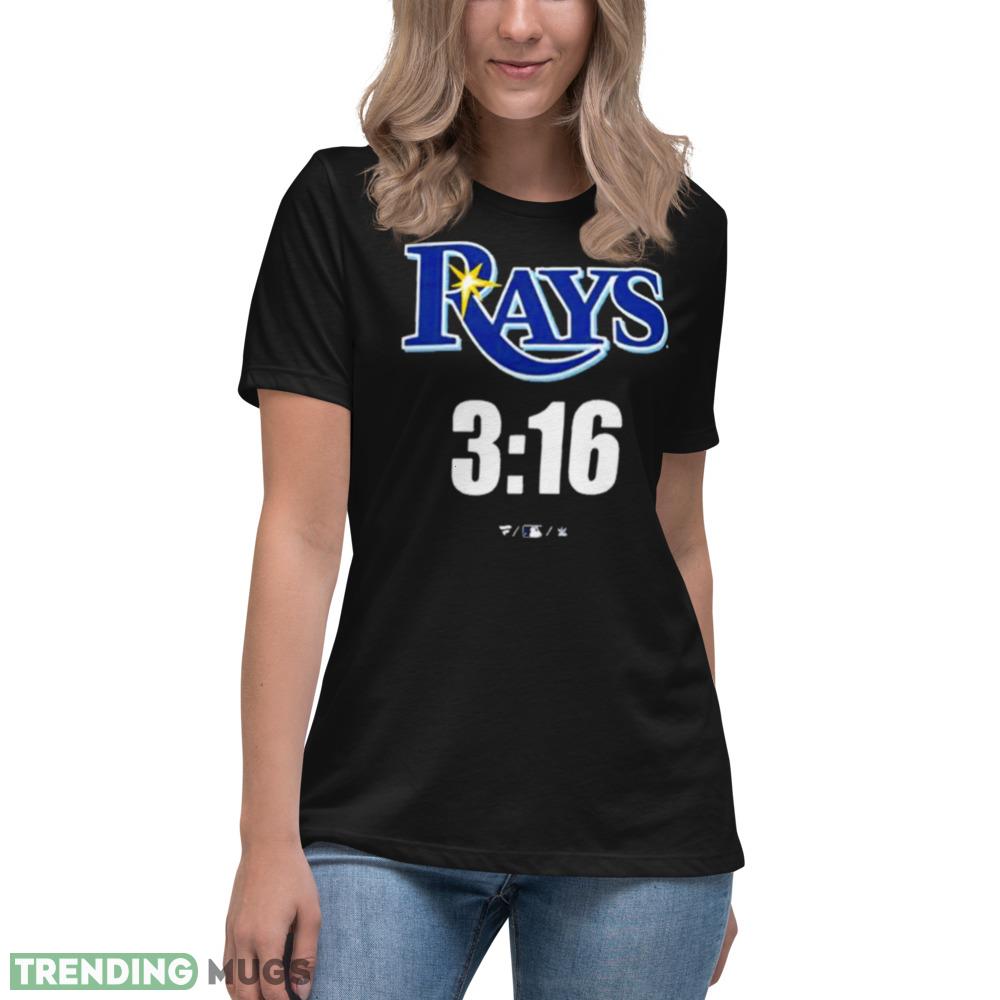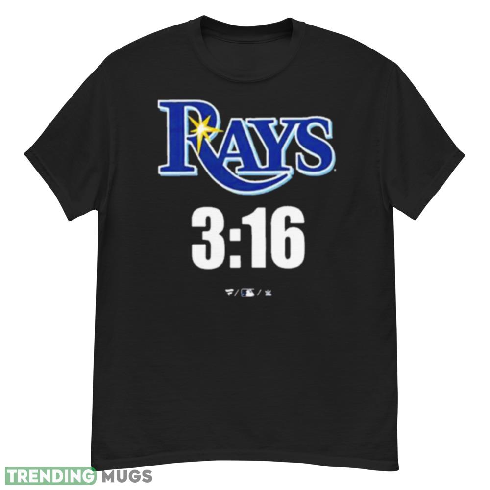 The front of the shirt features the iconic Stone Cold Steve Austin catchphrase “3:16” in bold letters, making it the ultimate choice for both wrestling and Rays fans alike. The Tampa Bay Rays logo is prominently displayed on the back, adding to the overall appeal of the shirt.