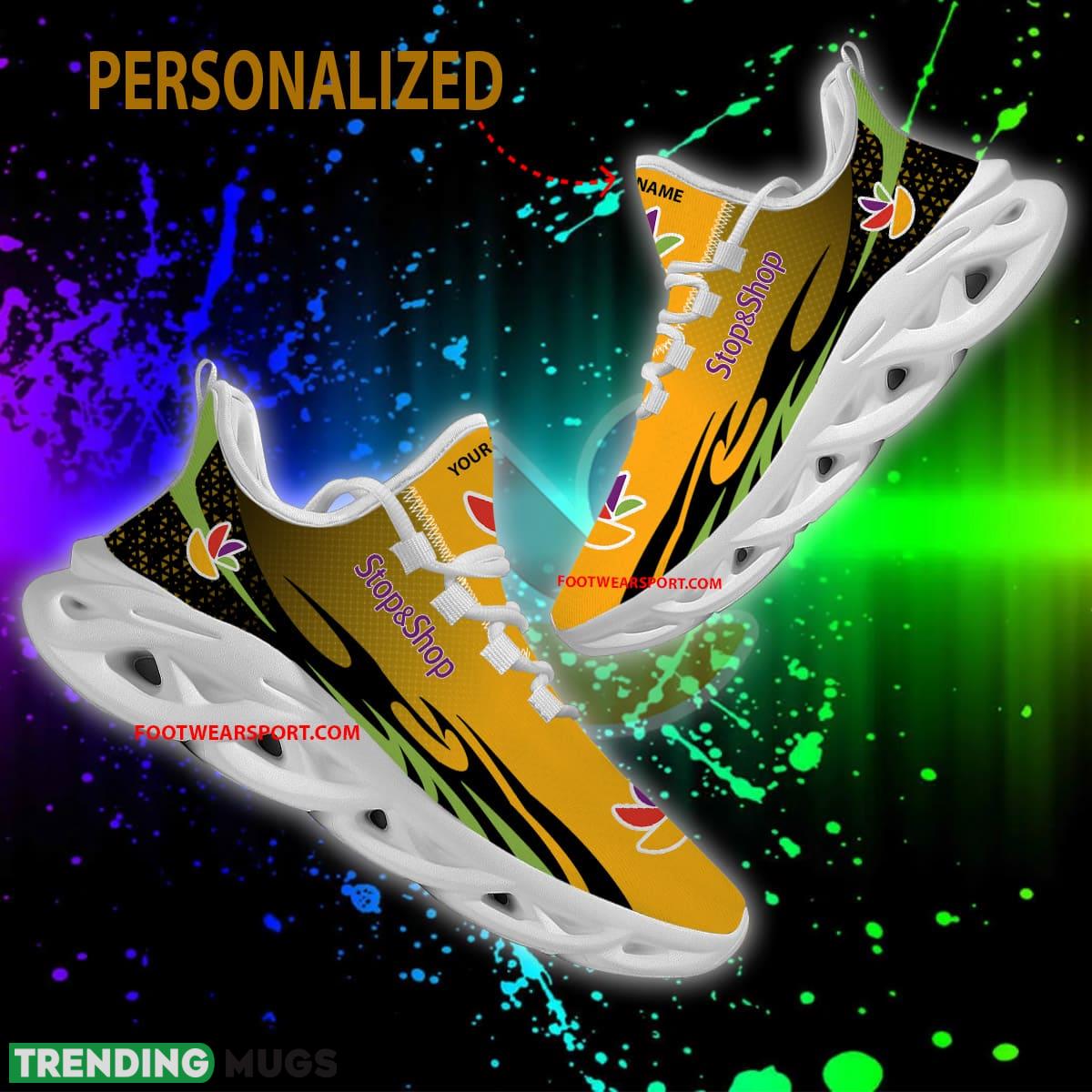 This Stop & Shop Max Soul Shoes Pattern New Chunky Sneaker Recognition Custom Name is a breathable, lightweight, and comfortable casual outdoor shoe that has a unique design. It is made of a mesh fabric which makes it sweat absorbent and breathable, while the rubber bottom ensures traction, comfort, and durability. It is available in two colors: black or white sole. There are two styles of shoelace holes so you can choose your preference.