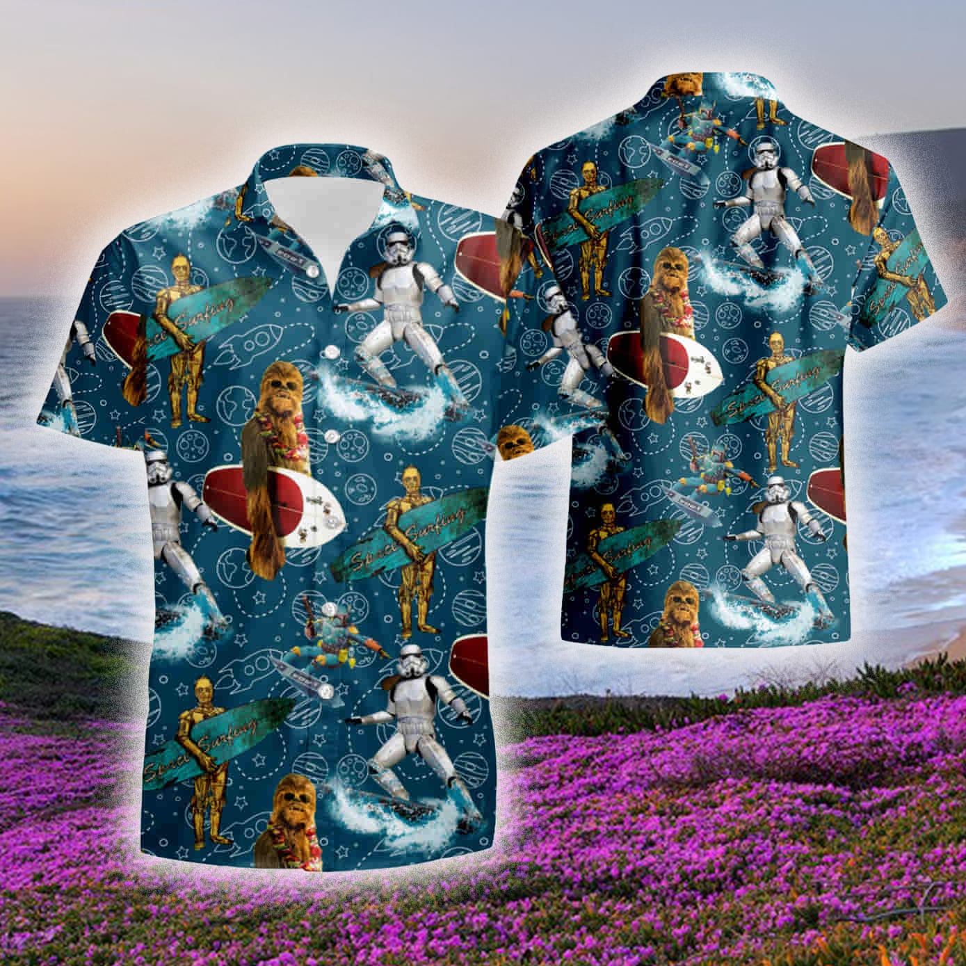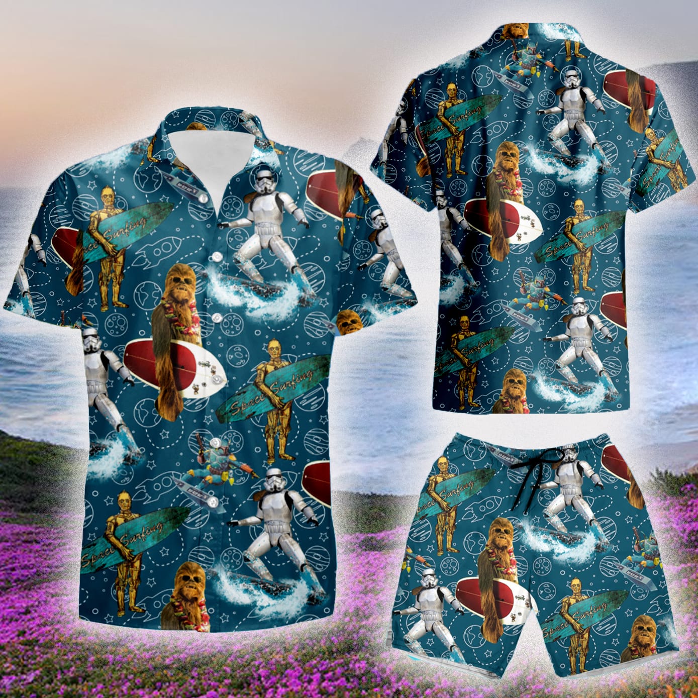 This design is available in a combo Hawaiian shirt & shorts. You can also get it separate. The default option is only one shirt or one pair of shorts. You have chosen a combo to get them both. This combo Stormtrooper Mandalorian Chewbacca C 3P0 Star Wars Set 3D Hawaiian Shirt And Short Gift For Men And Women is perfect to go to the beach. Get yours now or make a great gift.