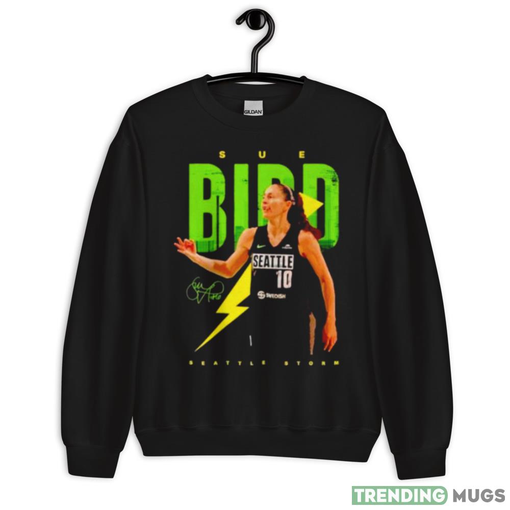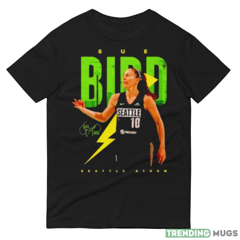 Get ready to show off your love for the Seattle Storm and one of the greatest WNBA players of all time with the Sue Bird Seattle Storm signature shirt. Made with high-quality materials, this stylish and comfortable shirt features a bold design that showcases Sue Bird’s iconic jersey number and signature. Whether you’re cheering on the Storm at the game or out and about, this shirt is the perfect way to represent your favorite team and player. Don’t miss out on this must-have addition to your Seattle Storm collection!