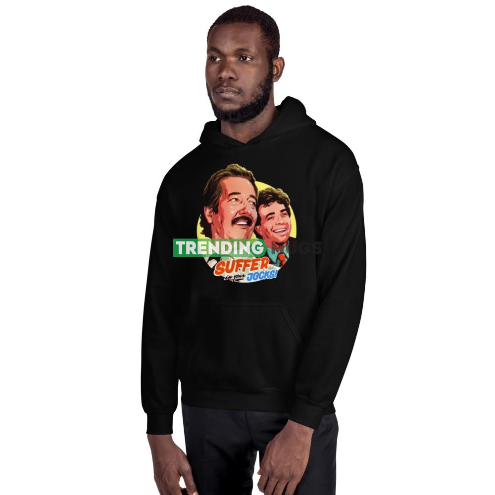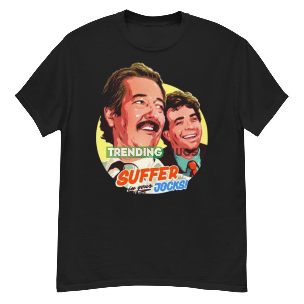 Introducing the Suffer In Your Jocks shirt, the perfect addition to your wardrobe for those days when you just want to lounge around in comfort. Made from high-quality materials, this shirt is soft to the touch and incredibly comfortable to wear.