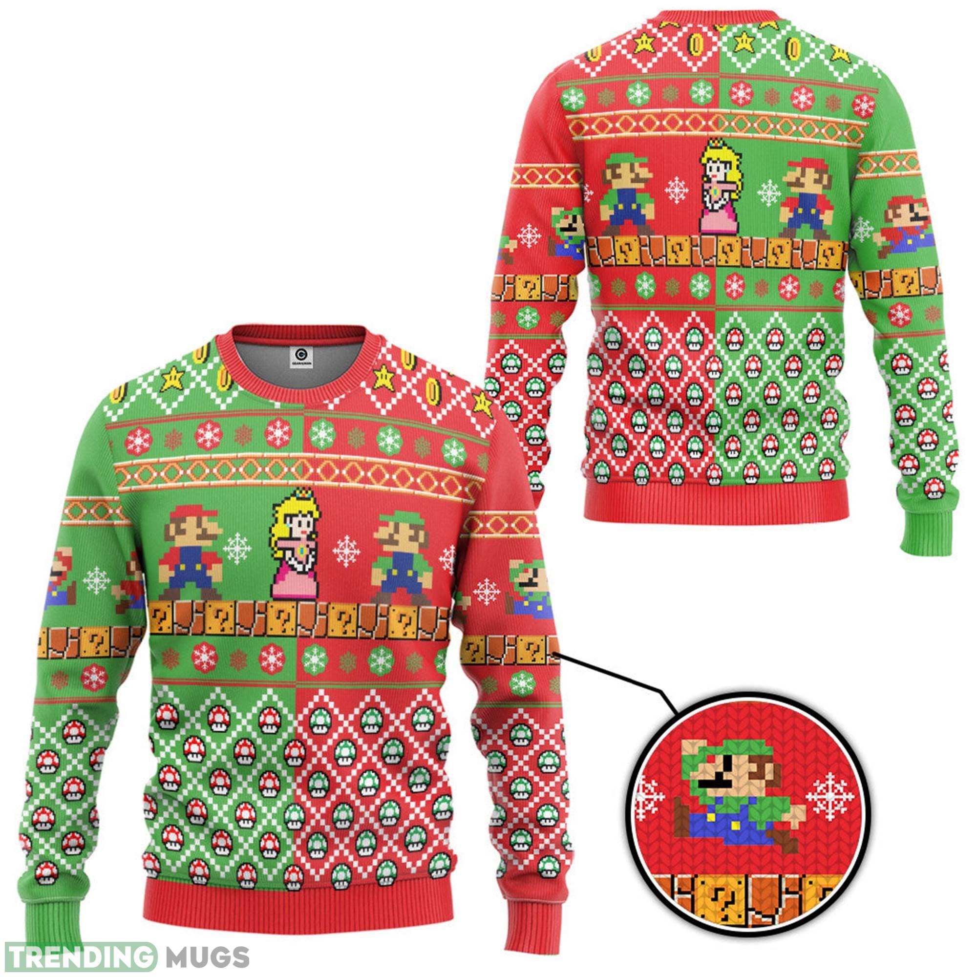 Featuring the iconic Super Mario Bros characters, Mario and Luigi, along with the mischievous Bowser, this sweater is a must-have for any fan of the beloved video game franchise. The intricate design showcases their adventures in the Mushroom Kingdom, bringing back nostalgic memories and creating new ones during the holiday season.