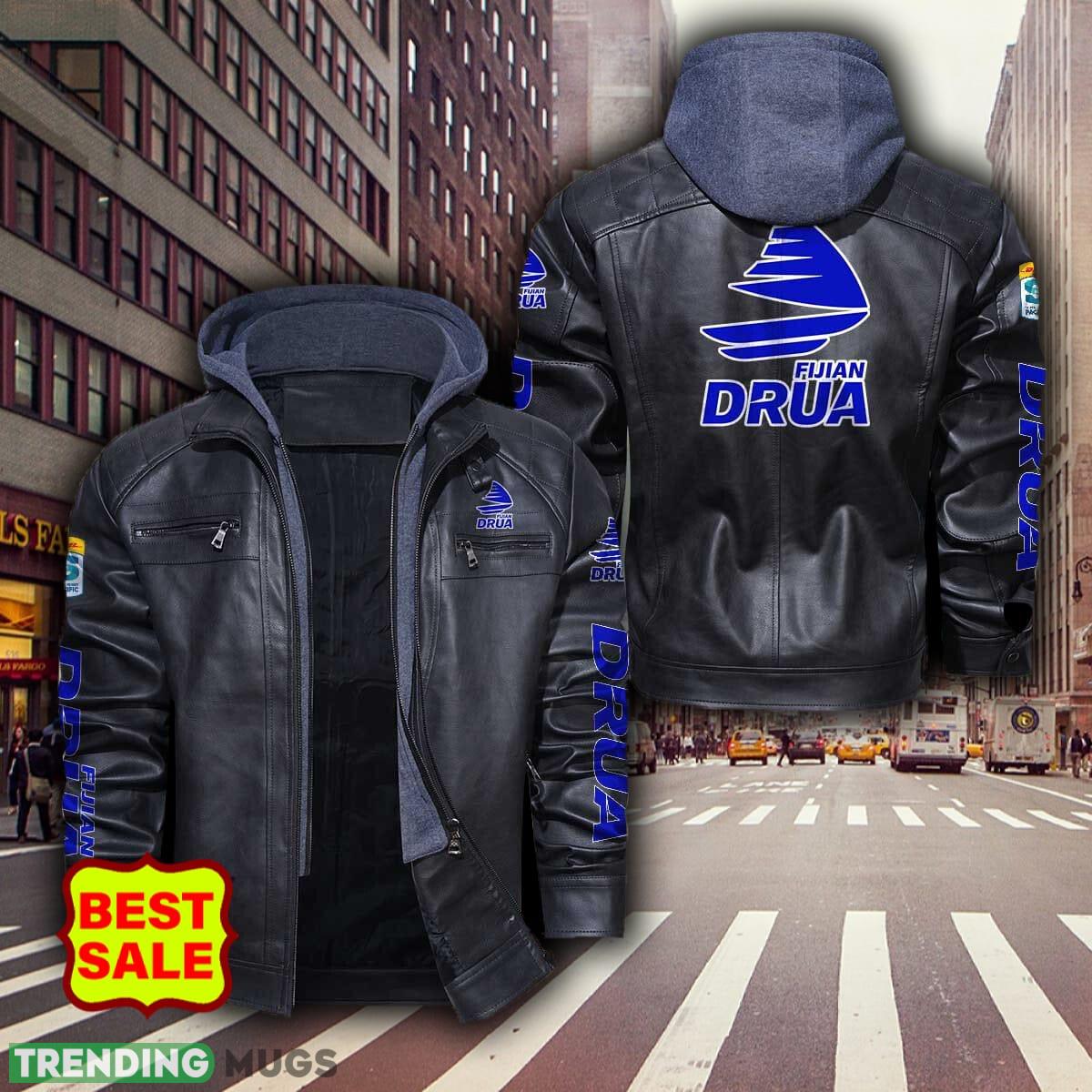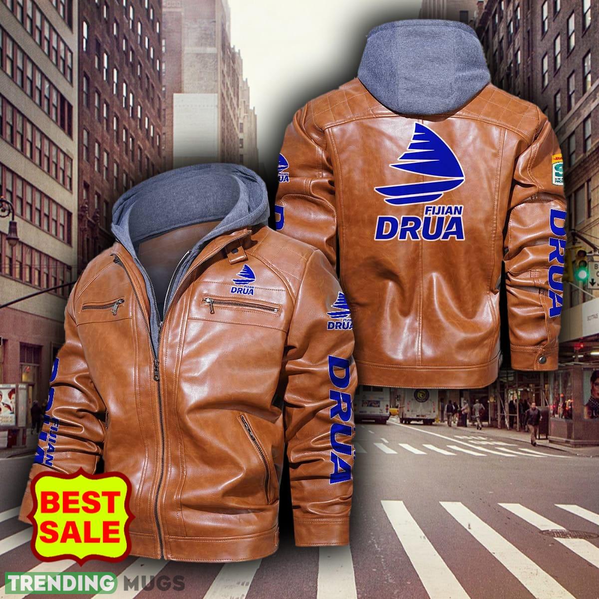 Super Rugby Fijian Dru Teams Logo Brown And Black Leather Jacket For Men And Women Material Information