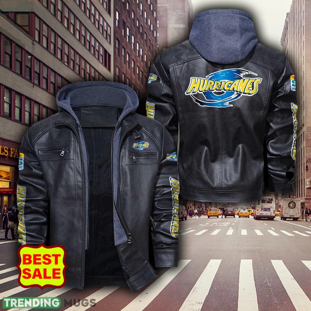 Super Rugby Hurricane Teams Logo Brown And Black Leather Jacket For Men And Women Material Information