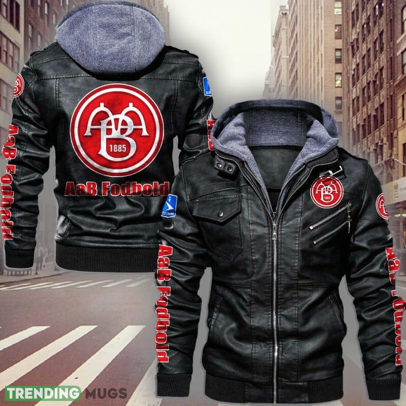 Superliga AaB Fodbold Design 7 Teams Logo Brown And Black Leather Jacket Material Information