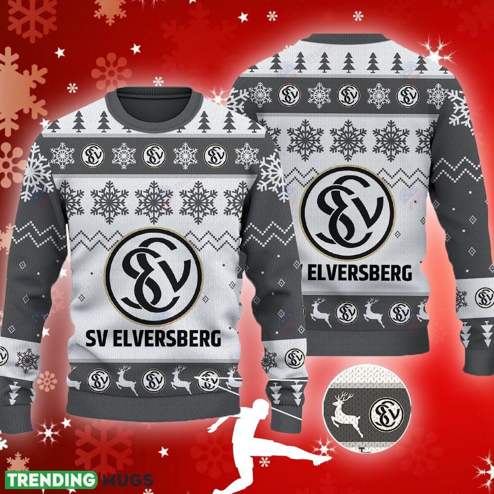 SV Elversberg Big Logo Ugly Christmas Tree Grey Sweater Gift For Fans – SV Elversberg Big Logo Ugly Snowflakes Reindeer Grey Sweater Gift For Fans