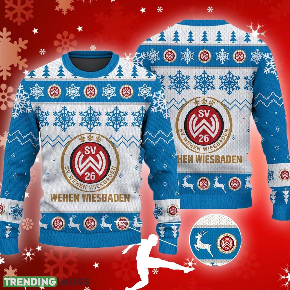 SV Wehen Wiesbaden Big Logo Ugly Christmas Tree Blue Sweater AOP Gift Holidays – SV Wehen Wiesbaden Big Logo Ugly Snowflakes Reindeer Blue Sweater AOP Gift Holidays