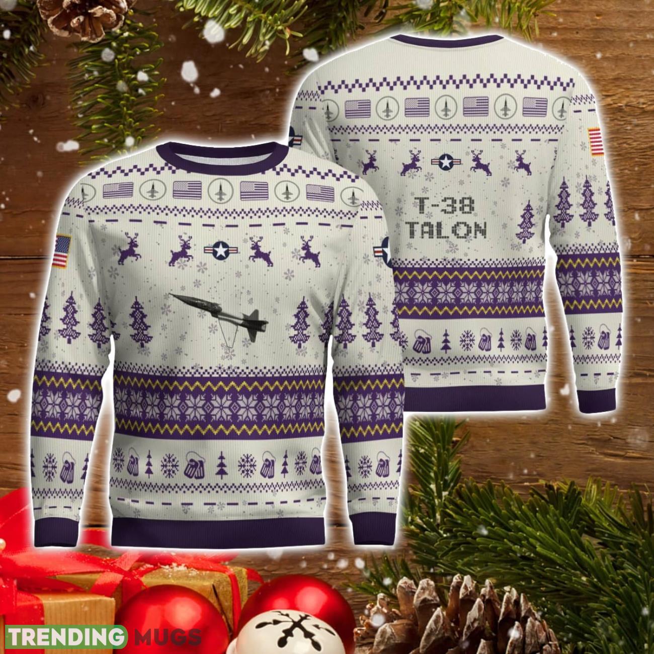 Get ready to soar through the holiday season in style with our T-38 Talon T38 AOP Aircraft Ugly Christmas Sweater! This eye-catching purple sweater is the perfect Christmas gift for the aviation enthusiast in your life, whether they’re a man or a woman. With a festive design featuring the iconic T-38 Talon aircraft, this sweater is sure to be a hit at any holiday gathering. Stay cozy and on-trend this Christmas with our T-38 Talon Ugly Christmas Sweater!