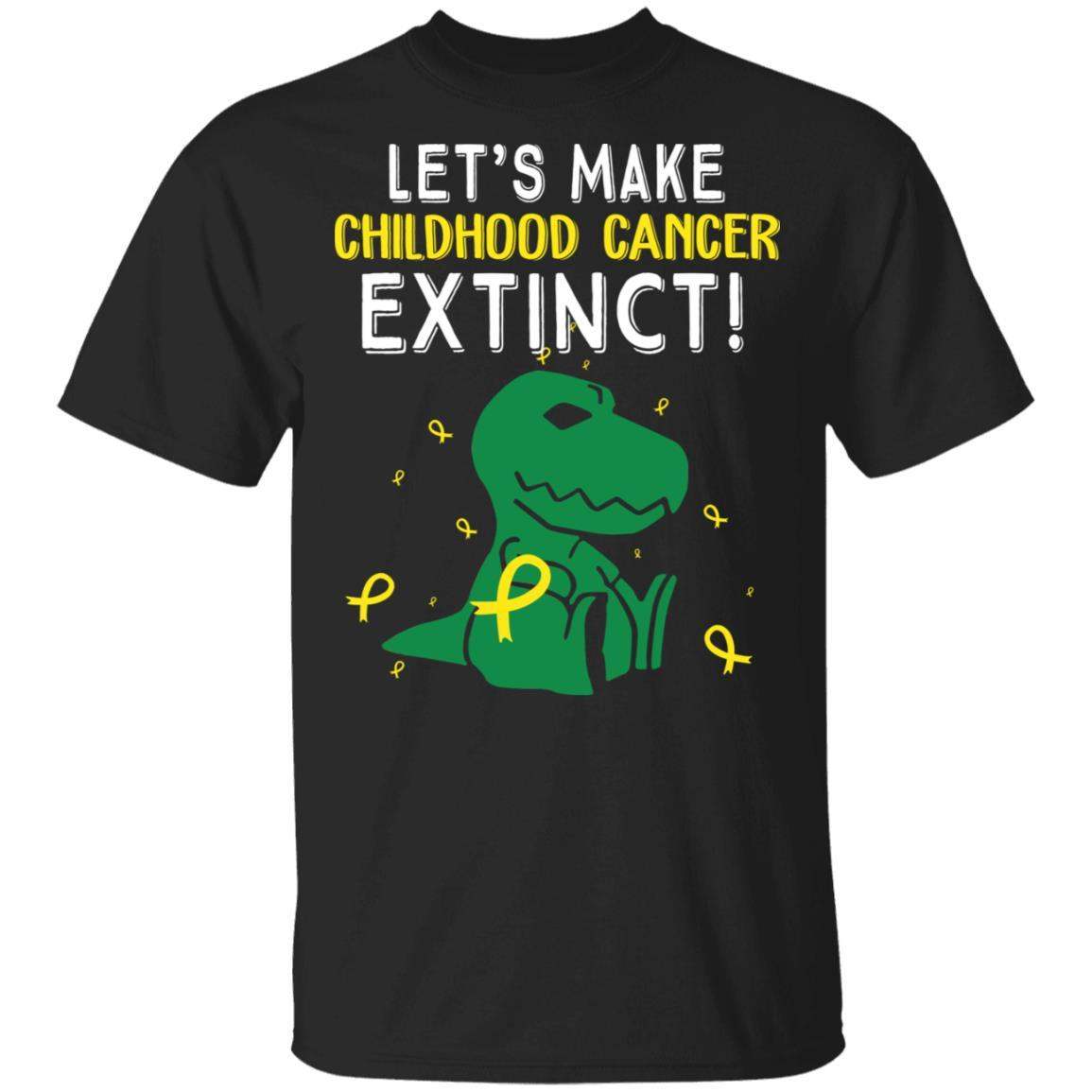 T-rex Dinosaur Let’s Make Childhood Cancer Extinct Shirt. You can get the shirt in t-shirt, hoodies, long sleeve and tank top.