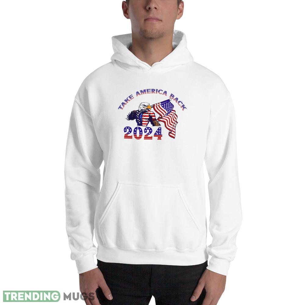 Take America Back 2024 American Eagle Holding Flag Essential T Shirt – 18500 Unisex Heavy Blend Hooded Sweatshirt