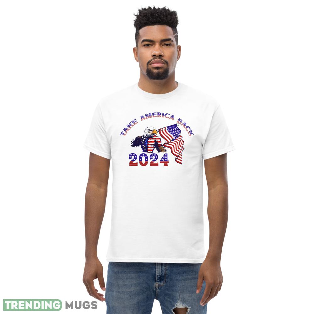 Take America Back 2024 American Eagle Holding Flag Essential T Shirt Details