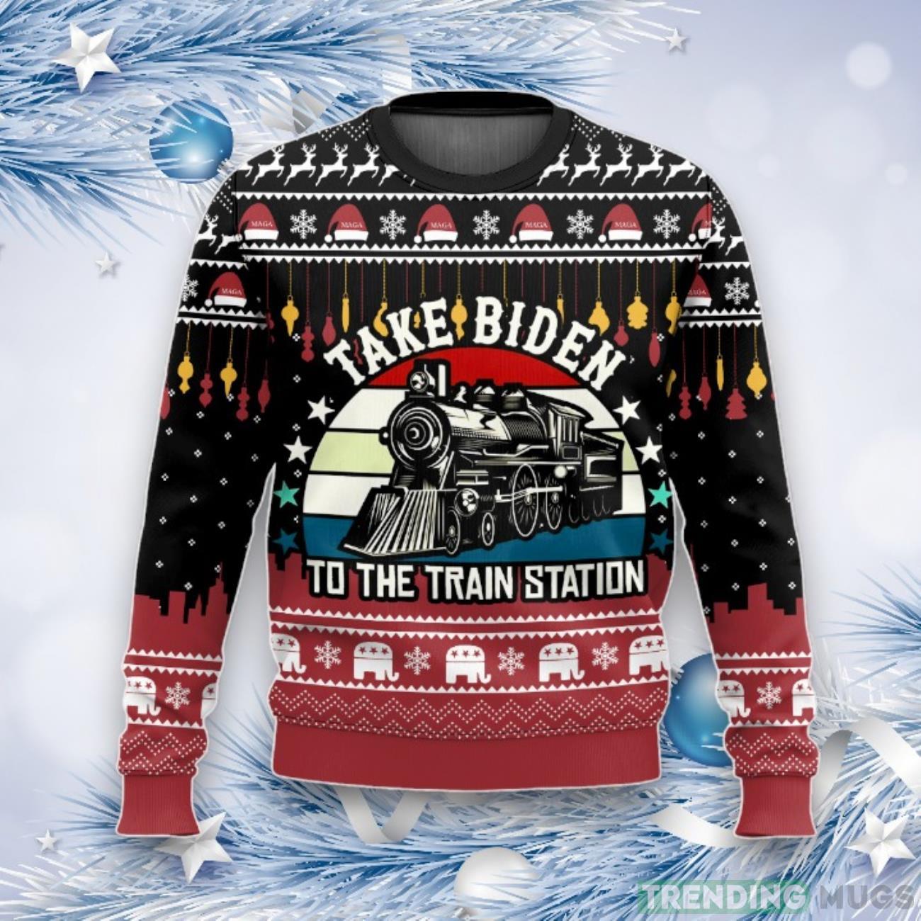 Take Biden To The Train Station Ugly Christmas Sweater For Men Women Product Photo 1