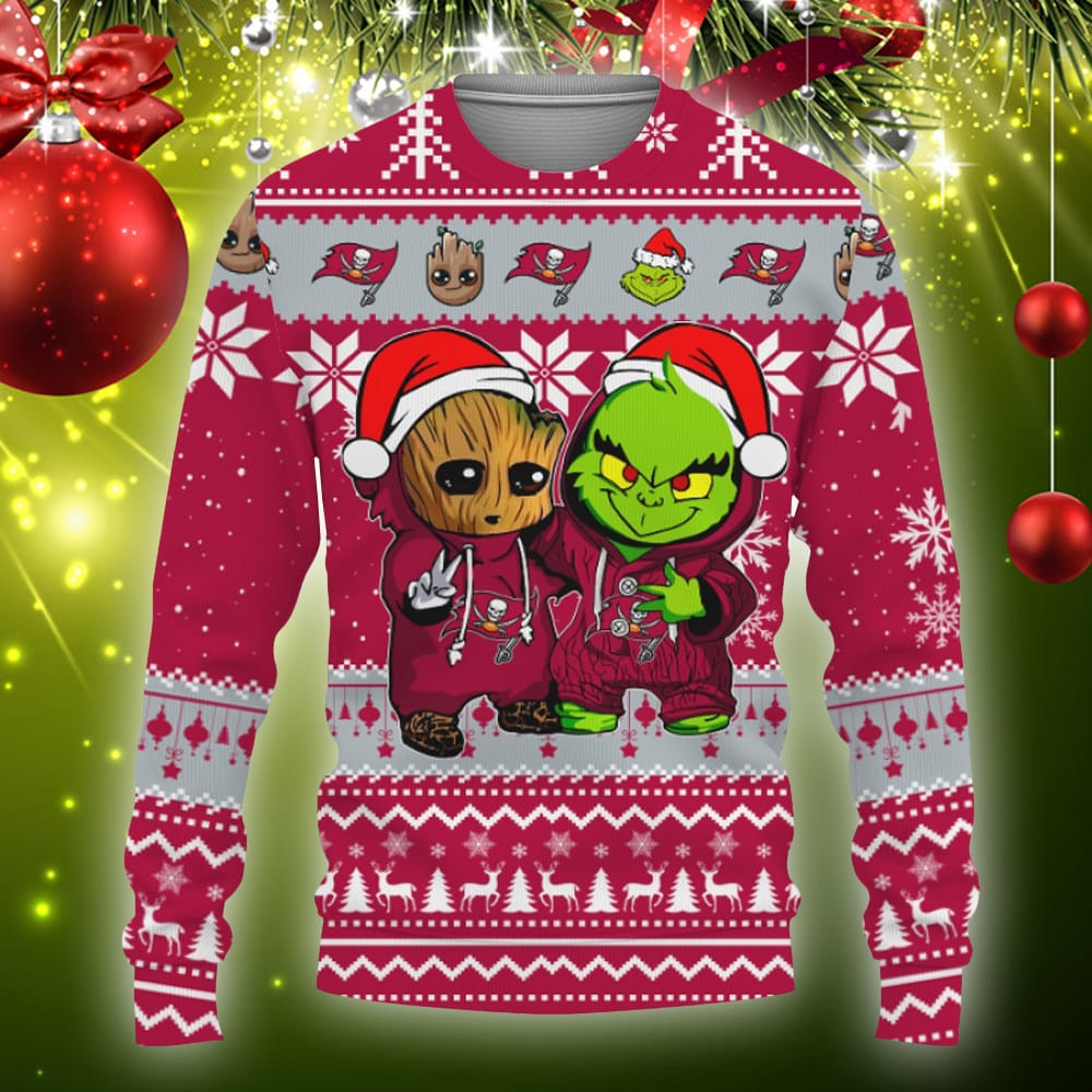 Tampa Bay Buccaneers Baby Groot And Grinch Best Friends Football American Knitted Christmas Sweater – 111123-074013