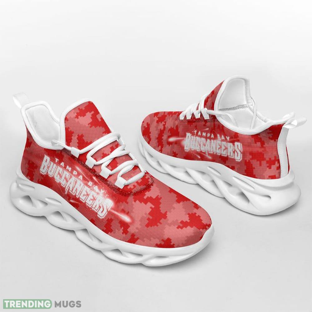 This Tampa Bay Buccaneers Knitted Camouflage Max Soul Shoes Influence Running Sports Sneakers is a breathable, lightweight, and comfortable casual outdoor shoe that has a unique design. It is made of a mesh fabric which makes it sweat absorbent and breathable, while the rubber bottom ensures traction, comfort, and durability. It is available in two colors: black or white sole. There are two styles of shoelace holes so you can choose your preference.
