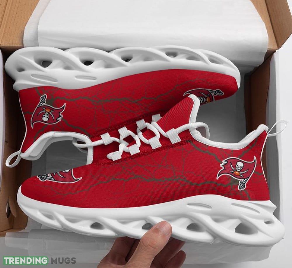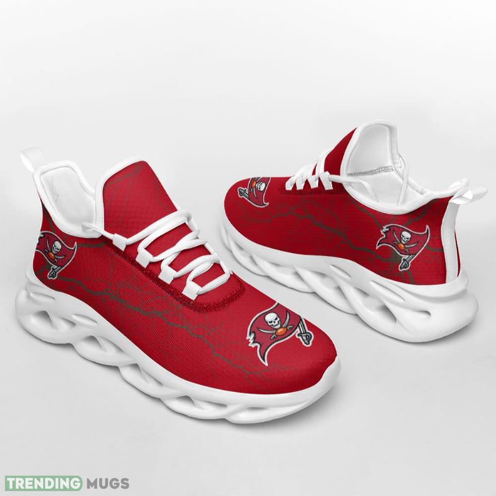 This Tampa Bay Buccaneers Lightning Pattern Max Soul Shoes Fusion Running Sports Sneakers is a breathable, lightweight, and comfortable casual outdoor shoe that has a unique design. It is made of a mesh fabric which makes it sweat absorbent and breathable, while the rubber bottom ensures traction, comfort, and durability. It is available in two colors: black or white sole. There are two styles of shoelace holes so you can choose your preference.