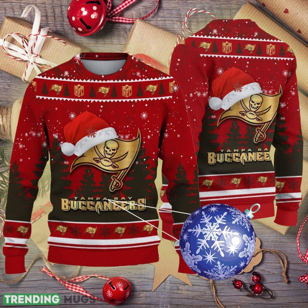 Tampa Bay Buccaneers Logo Golden Fans Santa Hat Tree Ugly Christmas 3D Sweater – Tampa Bay Buccaneers Logo Golden Fans Santa Hat Tree Ugly Christmas 3D Sweater