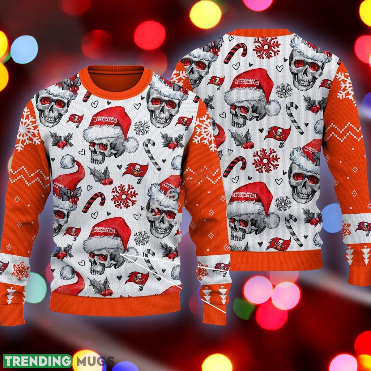 Some of the Tampa Bay Buccaneers Logo Skull Candy Cane Orange Ugly Christmas 3D Sweater photos
