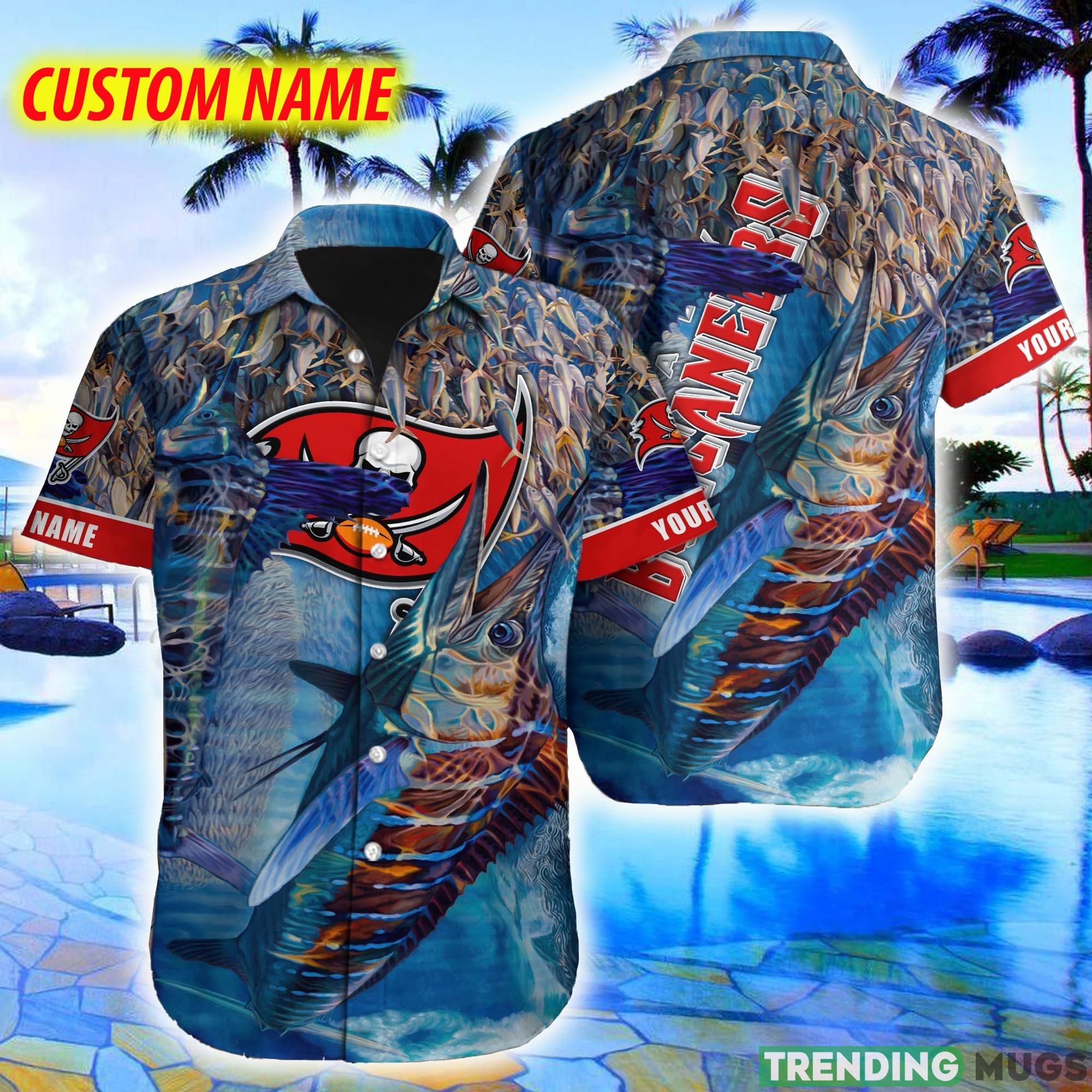 Tampa Bay Buccaneers NFL Custom Name Hawaiian Shirt Fish Fans Gift Blue Summer Details: