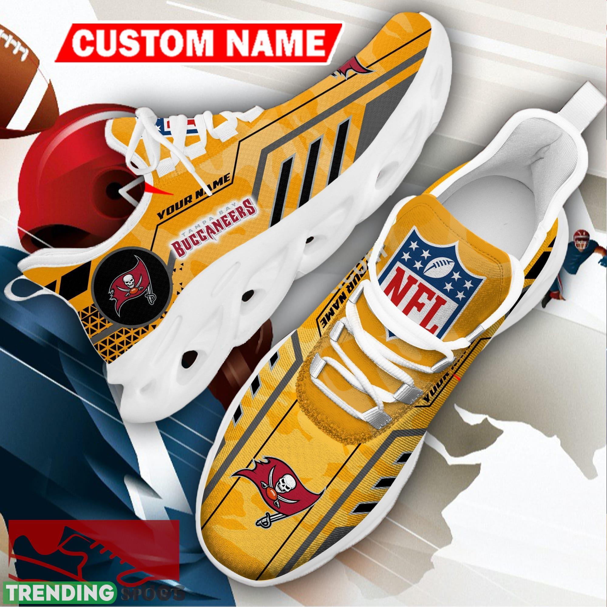 Tampa Bay Buccaneers NFL Logo Running Sneakers Camo Yellow Max Soul Shoes Personalized information: