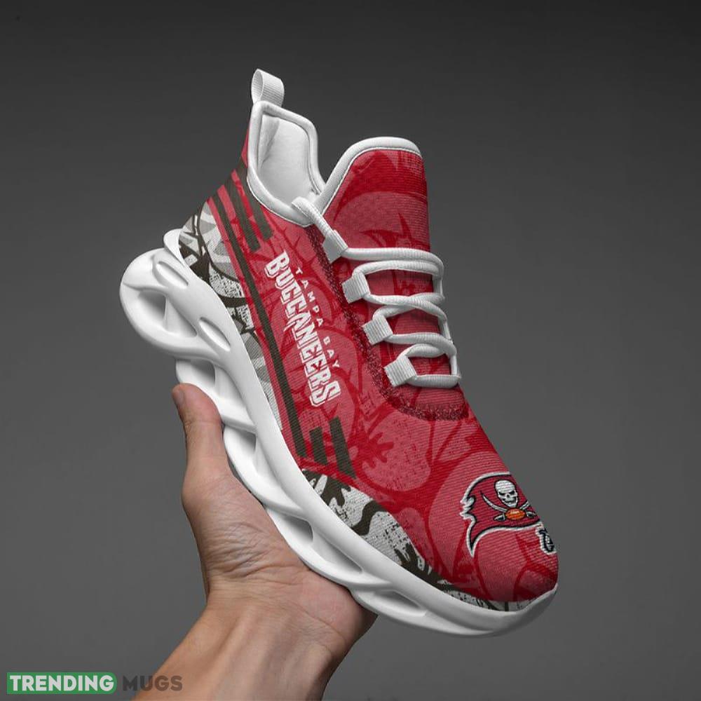 This Tampa Bay Buccaneers Tropical Flowers Max Soul Shoes Exclusive Running Sports Sneakers is a breathable, lightweight, and comfortable casual outdoor shoe that has a unique design. It is made of a mesh fabric which makes it sweat absorbent and breathable, while the rubber bottom ensures traction, comfort, and durability. It is available in two colors: black or white sole. There are two styles of shoelace holes so you can choose your preference.