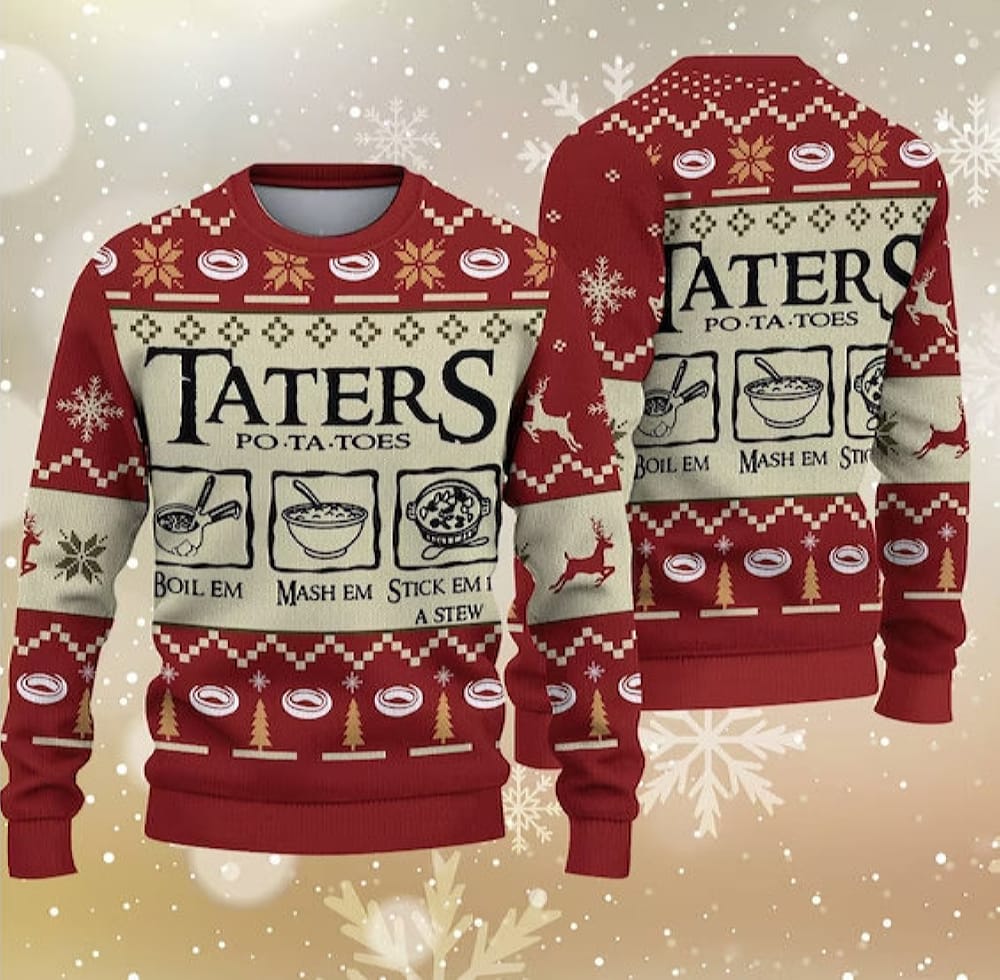 Taters Potatoes Ugly Christmas Sweater LOTR Fans Sweater Xmas Gifts Ugly Christmas Pattern Christmas Sweatshirt Christmas Gift – 031223-084730