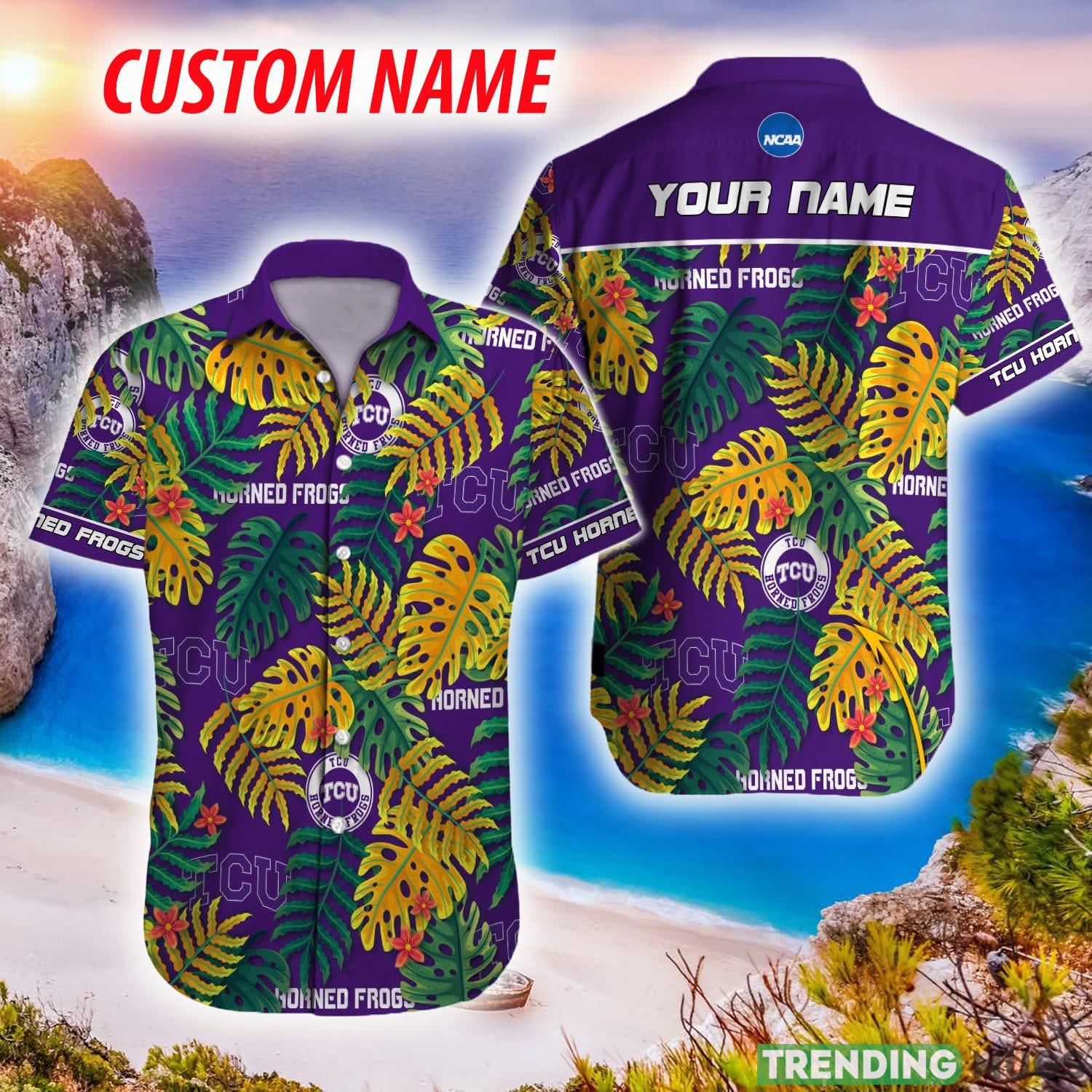 TCU Horned Frogs NCAA Hawaiian Shirt Custom Name Leaf Colors For Men And Women Details: