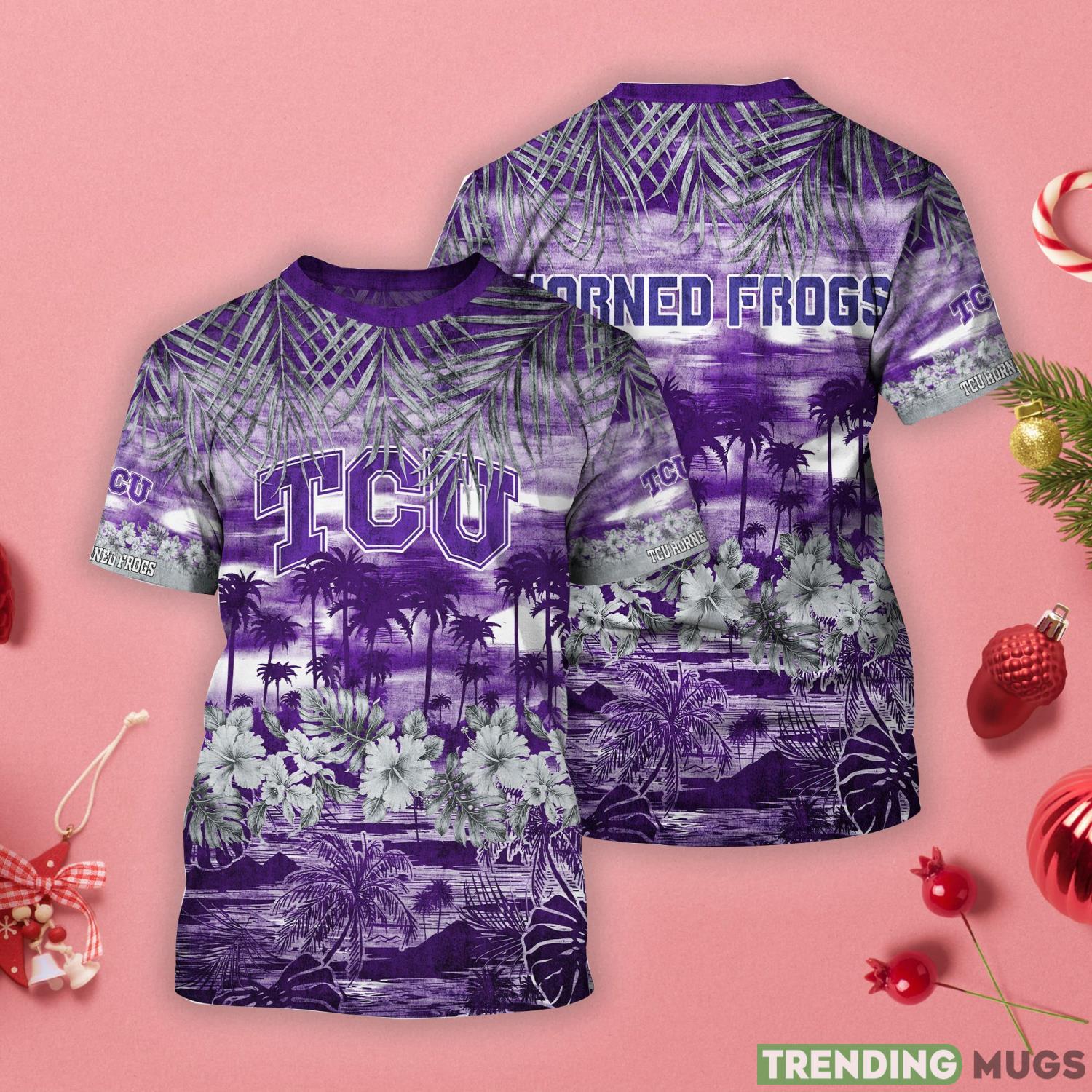 TCU Horned Frogs Tropical Palm And Flower Pattern 3D T-Shirt Information
