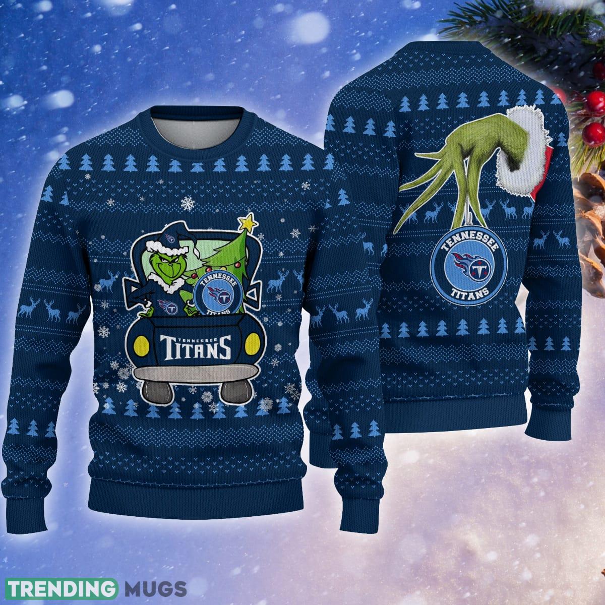 Tennessee Titans And Grinch Driving With Pine Trees Ugly Christmas 3D Sweater Gift For Fans