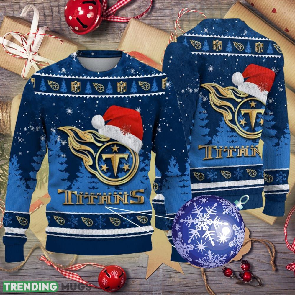 Tennessee Titans Logo Golden Fans Santa Hat Tree Ugly Christmas 3D Sweater Informations: