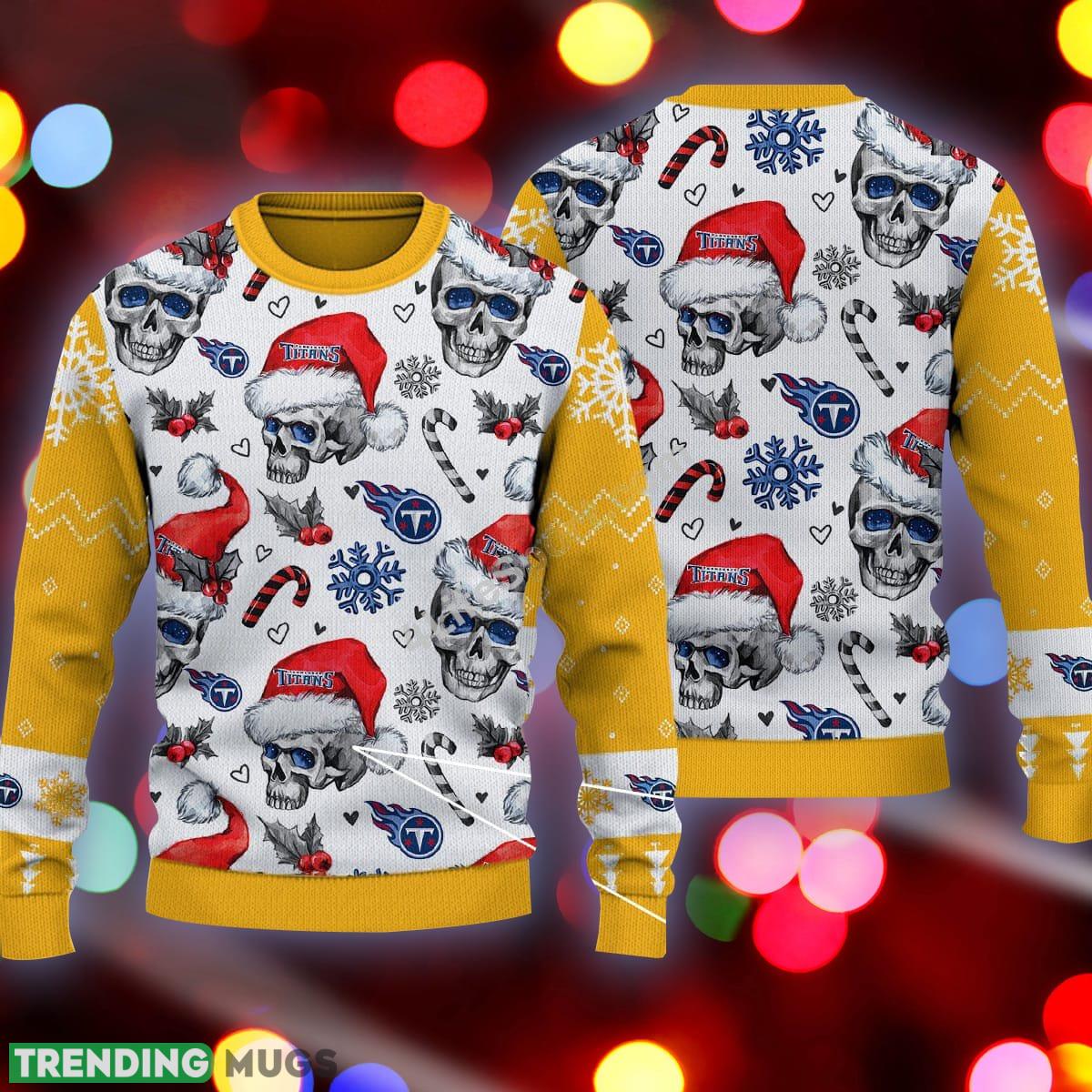 Tennessee Titans Logo Skull Candy Cane Yellow Ugly Christmas 3D Sweater Informations: