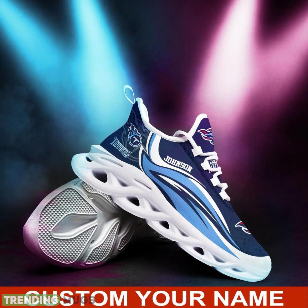Show your Tennessee Titans pride with these NFL Max Soul Sneakers! Perfect for fans of all ages, these personalized shoes are a must-have for any die-hard Titans supporter. Whether you’re hitting the gym or running errands, these sporty shoes are comfortable and stylish. Made for both men and women, these running shoes feature the iconic Titans logo and colors, making them the ultimate accessory for game day or everyday wear. Get your hands on these exclusive Tennessee Titans sneakers and show off your team spirit in style!
