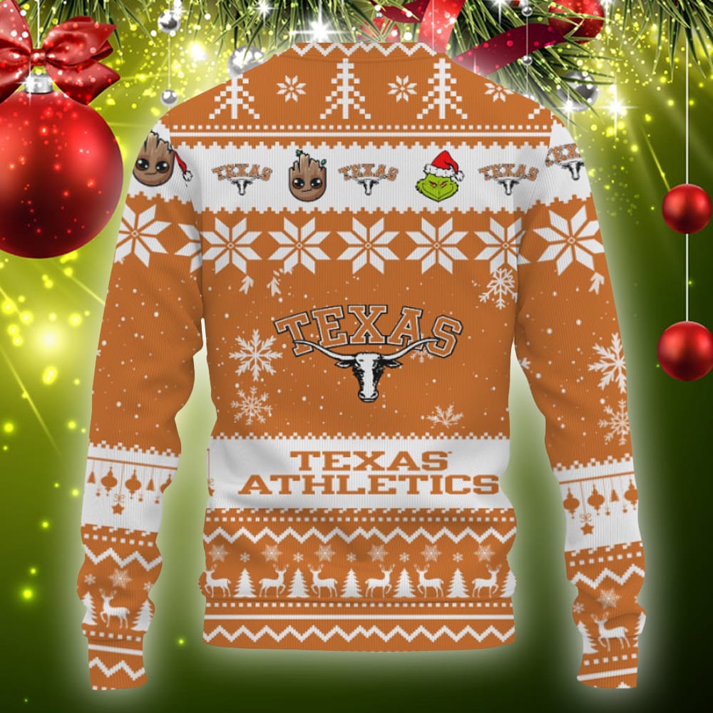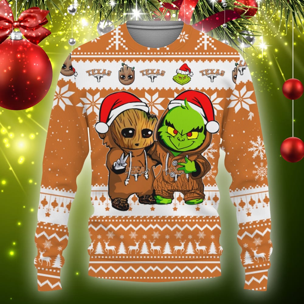Some of the Texas Longhorns Baby Groot And Grinch Best Friends Football American Knitted Xmas 3D Sweater Gift Holidays photos
