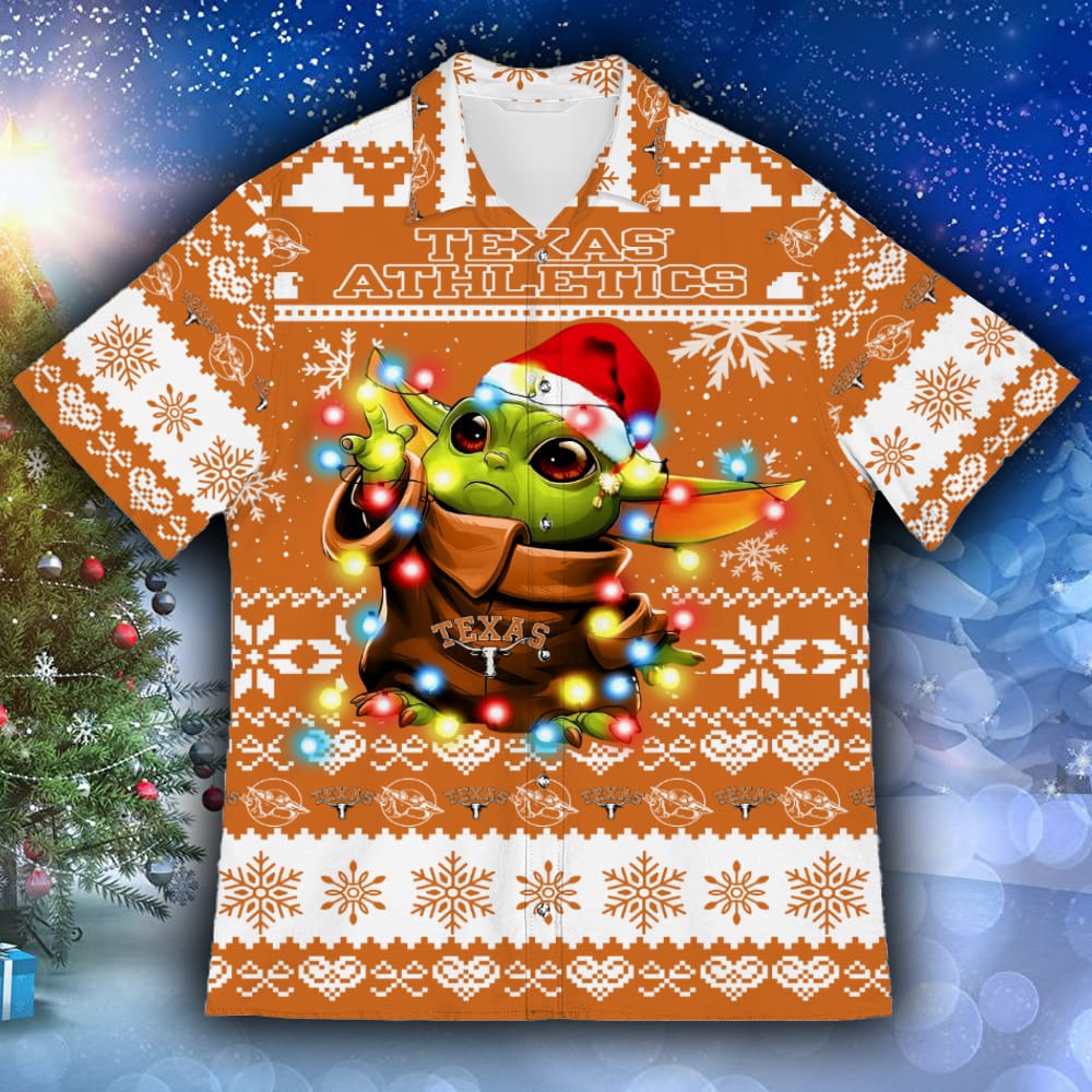 Celebrate this Christmas with the Texas Longhorns Baby Yoda Star Wars Sports Football American Ugly Hawaiian Shirt. Order now and be the envy of every fan in the stadium!