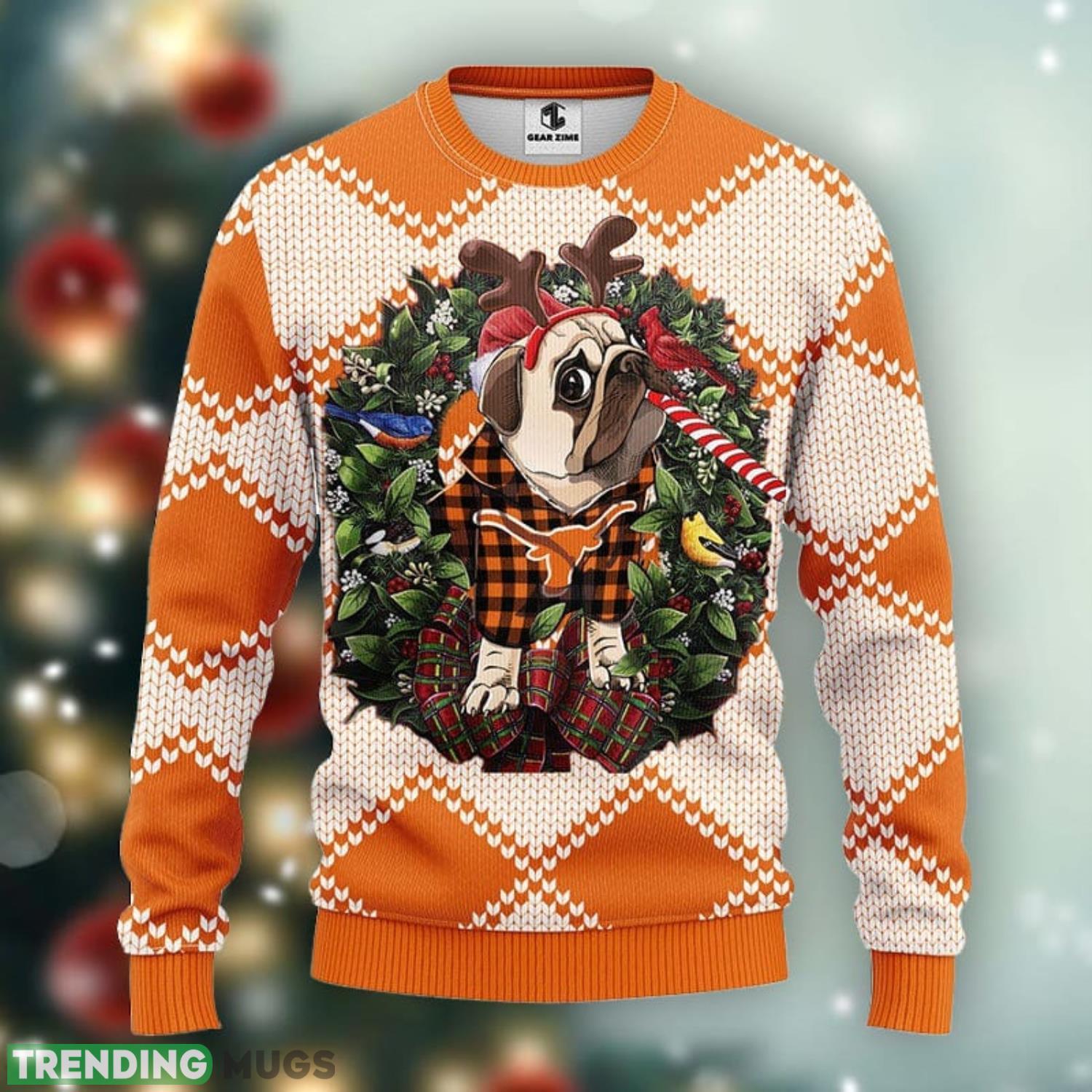 Featuring a delightful design of adorable pub dogs donning Santa hats and Longhorns-themed accessories, this sweater is both cute and hilarious. The vibrant colors and attention to detail make it a standout piece at any holiday gathering.