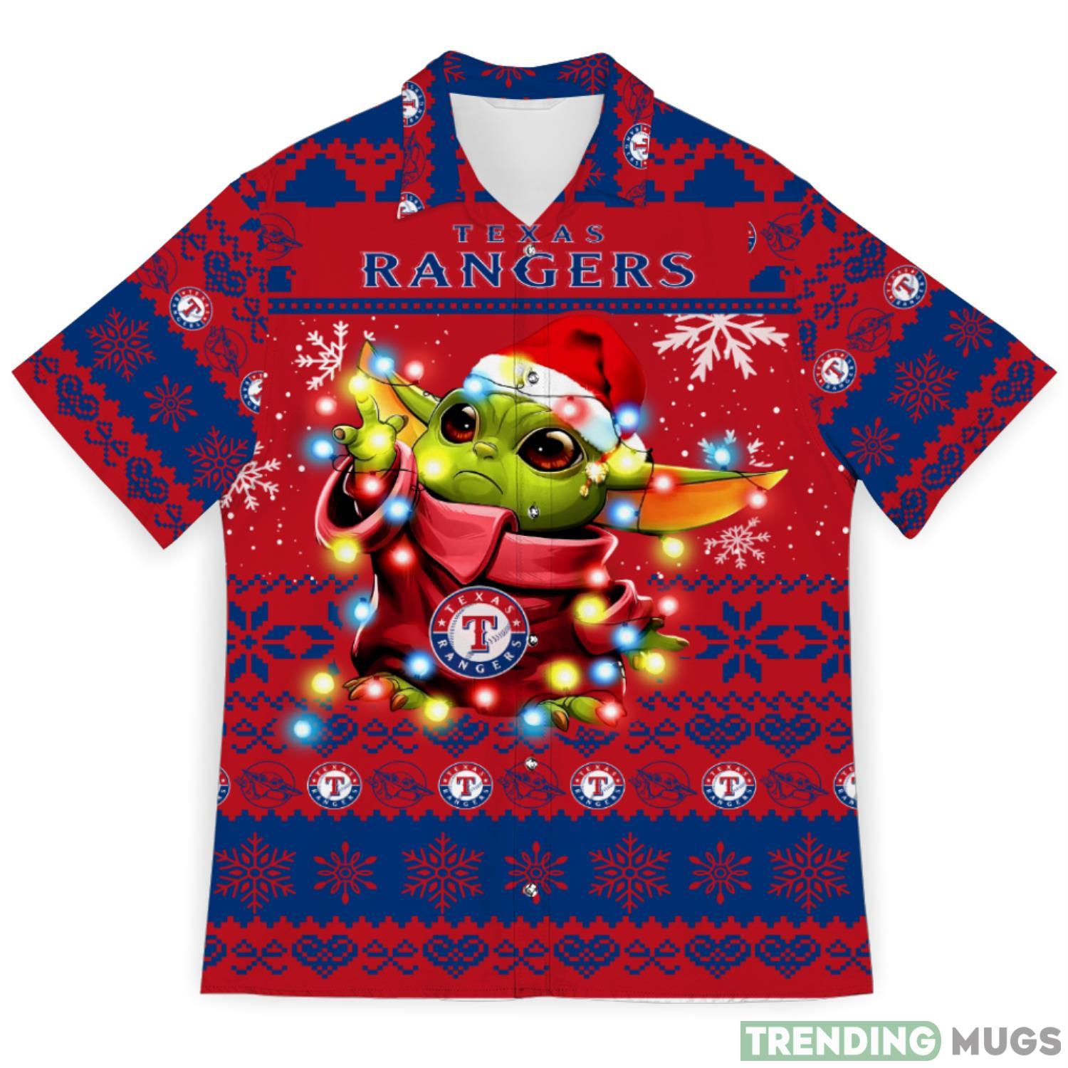 So why wait? Be the talk of the town this holiday season with our Texas Rangers Baby Yoda Star Wars Ugly Christmas Sweater Pattern 3D Hawaiian Shirt. Order now and make a bold fashion statement that merges your love for the Texas Rangers, Star Wars, and the Christmas spirit.