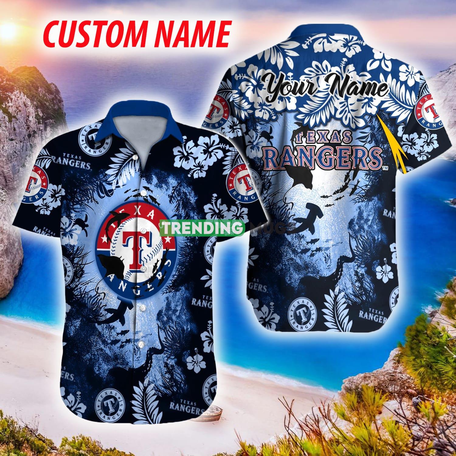 Texas Rangers MLB Hawaiian Shirt Ocean Hibiscus Custom Name For Fans Gift Details:
