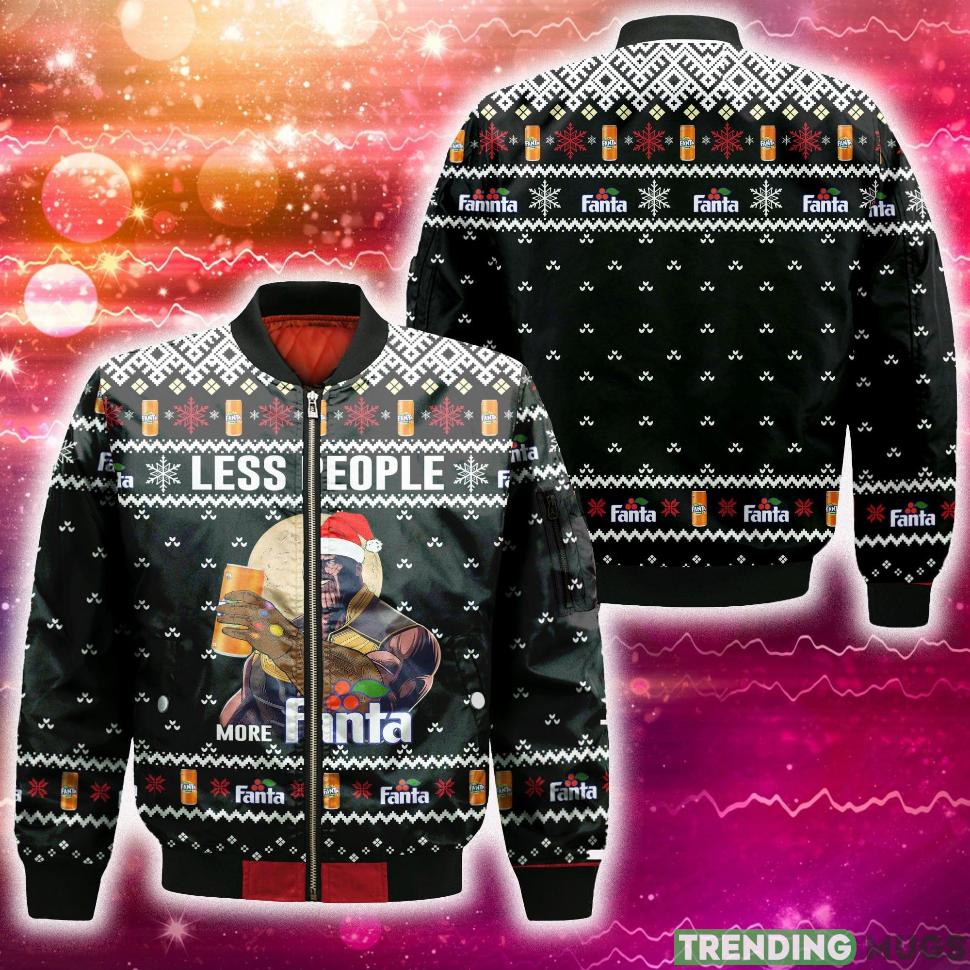 Calling all Marvel fans and Fanta lovers! Feast your eyes on our exclusive Thanos Less People More Fanta 3D Bomber AOP for Men and Women, the perfect Christmas gift for the ultimate superhero enthusiast.